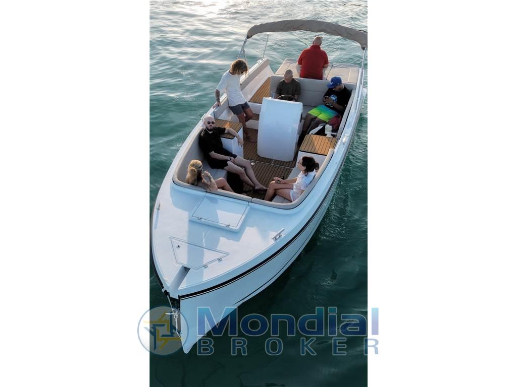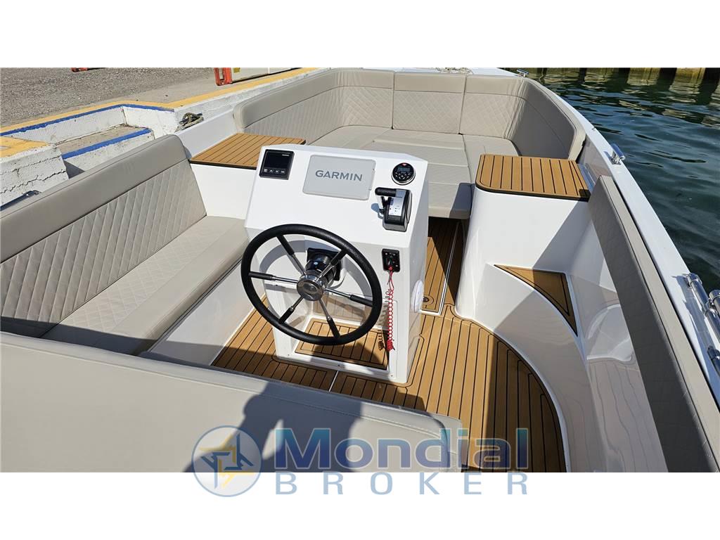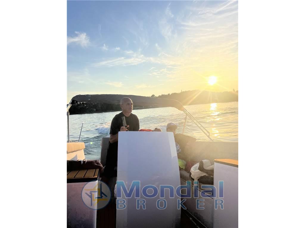 Notas internasNotas de la instrumentaciónBatterie, Comando motori elettronico, Computer di bordo, Contamiglia, Ecoscandaglio, GPS, Pompa di sentina automaticaNotas de armamentoAltoparlanti, Copriscafo, Cuscineria completa, Cuscineria di poppa, Cuscineria di prua, Cuscineria Pozzetto, Frigorifero esterno, Prendisole aggiunto, Prese interne 12v, Radio AM/FM |