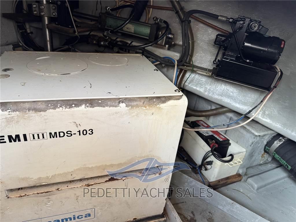 Notas de armamentoAltoparlanti, Aria condizionata, Barometro, Binocolo, Boetta fumogena, Boiler, Carte nautiche, Cassetta di pronto soccorso, Cinture di salvataggio, Cucina, Cuscineria completa, Dotazioni di sicurezza entro 50 miglia, Forno, Frigorifero interno (N°2), Fuochi a mano a luce rossa, Giubbetti di salvataggio, Impianto TV, Pavimento interno in legno, Prese interne 12v, Prese interne 220v, Radio AM/FM, Riflettore Radar, Salvagente anulare con cima munita di boetta luminosa, Serbatoio Acque Nere, Stereo, Strumenti da carteggio, Tendalino, TV, 2 WC marino elettrico (Tecma), Zattera di salvataggio