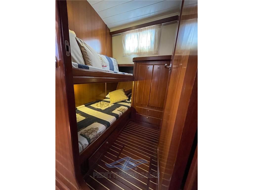 Notas internasNotas de la instrumentaciónAntenna radar, Ecoscandaglio,GPS, Pilota automatico, Plotter, Radar, Radio VHF,Stazione ventoNotas de armamentoAltoparlanti, Aria condizionata (Chiller), Bimini (flybridge), Boiler, Congelatore, Cucina (gas), Cuscineria completa, Cuscineria fly, Digitale Terrestre, Forno, 2 Frigorifero interno, Impianto TV (salone e cabina armatore), Inverter, Pavimento interno in legno, Stereo (HI-FI con sub woofer), Teli copri finestra, Tendalino (prua), 2 WC marino elettrico (Tecma), Allarme motore, Allarme sentina, Ancora, Angolo barra, Autoclave, 6 Batterie, Bussola, Camminamenti laterali in teak, Colorazione speciale (blu), Doccia esterna, Doppia timoneria, Elica di poppa - stern thruster, Elica di prua - bow thruster, Faro orientabile, Passerella (idraulica), Pompa di sentina automatica, Pompa di sentina elettrica, Pozzetto Teak, Presa 220V banchina, Salpa Ancore Elettrico, Scaletta da bagno. |