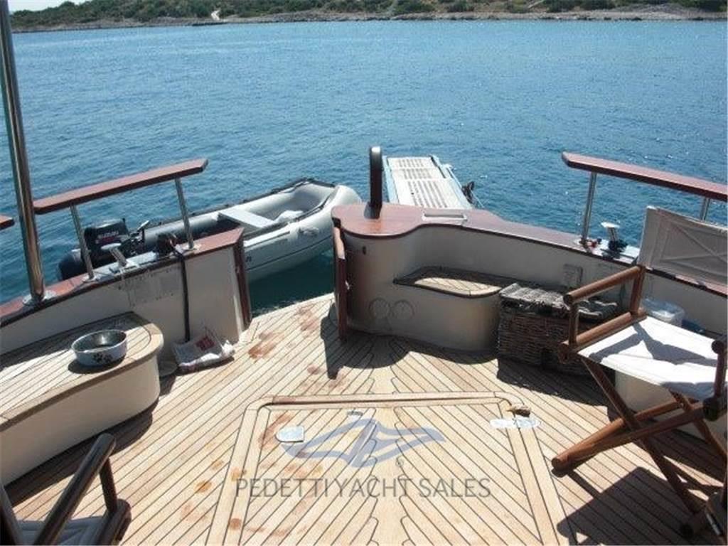 Notas internascucina atrezzata Notas de la instrumentacióngps radar plotter log eco pilota automatico tutto raymarine ,Notas de armamentoAllestimento tecnico e di coperta:Doccia esterna, Elica di prua - bow thruster, Pompa di sentina elettrica, Pompa di sentina manuale, Pozzetto Teak, Ripetitore strumentazione, Salpa Ancore Elettrico, Scaletta da bagno, Supporto motore fuoribordo, Tavolo pozzetto, Tender. Dotazioni domestiche di bordo: WC marino elettrico. Dotazioni di sicurezza: Riflettore Radar, Zattera di salvataggio. Intrattenimento: DVD, Impianto TV, Radio AM/FM, Stereo. Cucina ed elettrodomestici: Congelatore, Frigorifero interno, Microonde. Tappezzerie: Cuscineria Pozzetto. |
