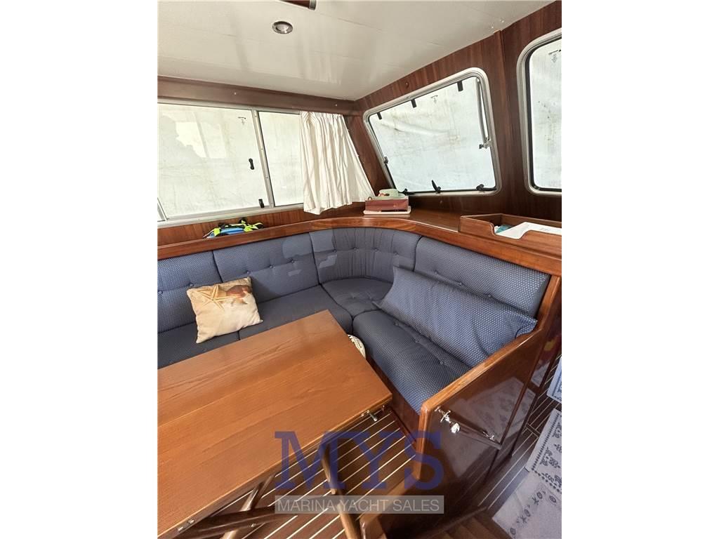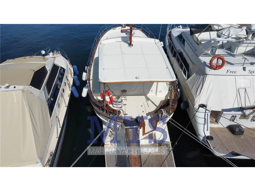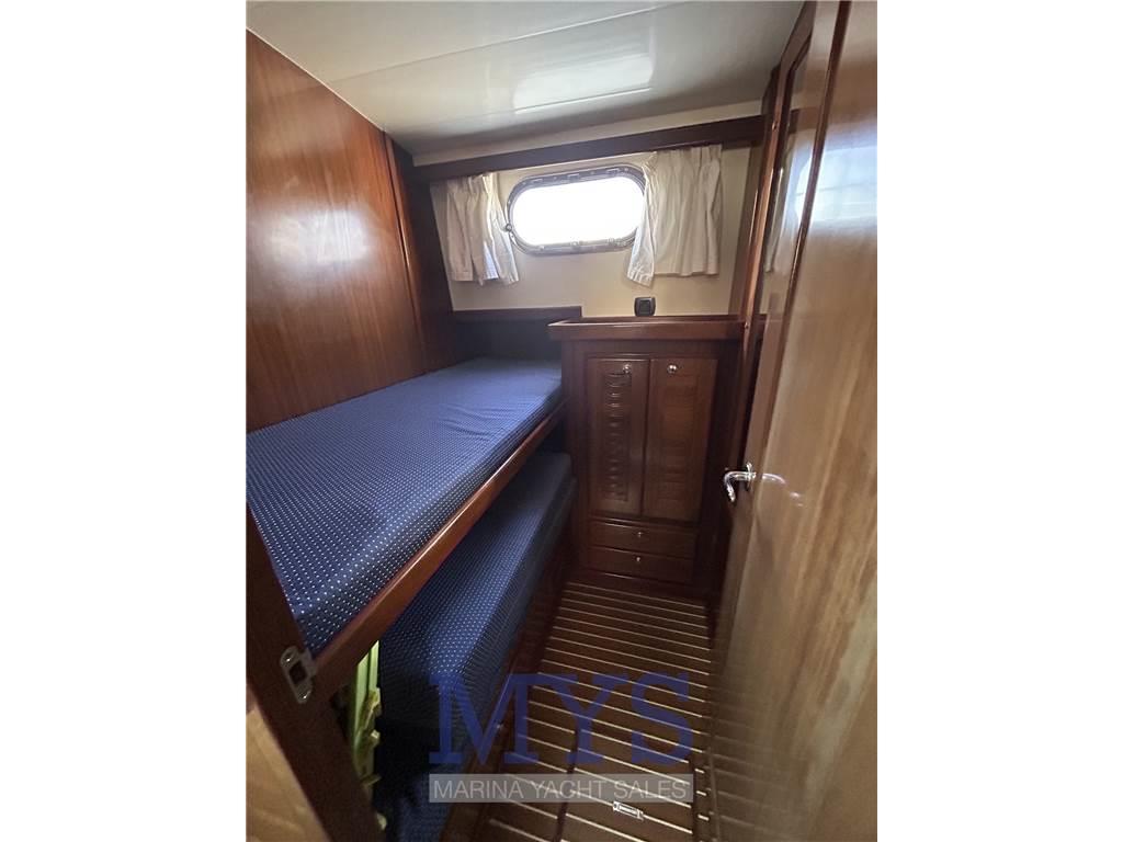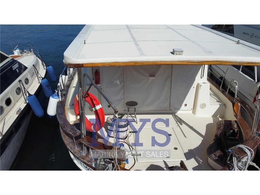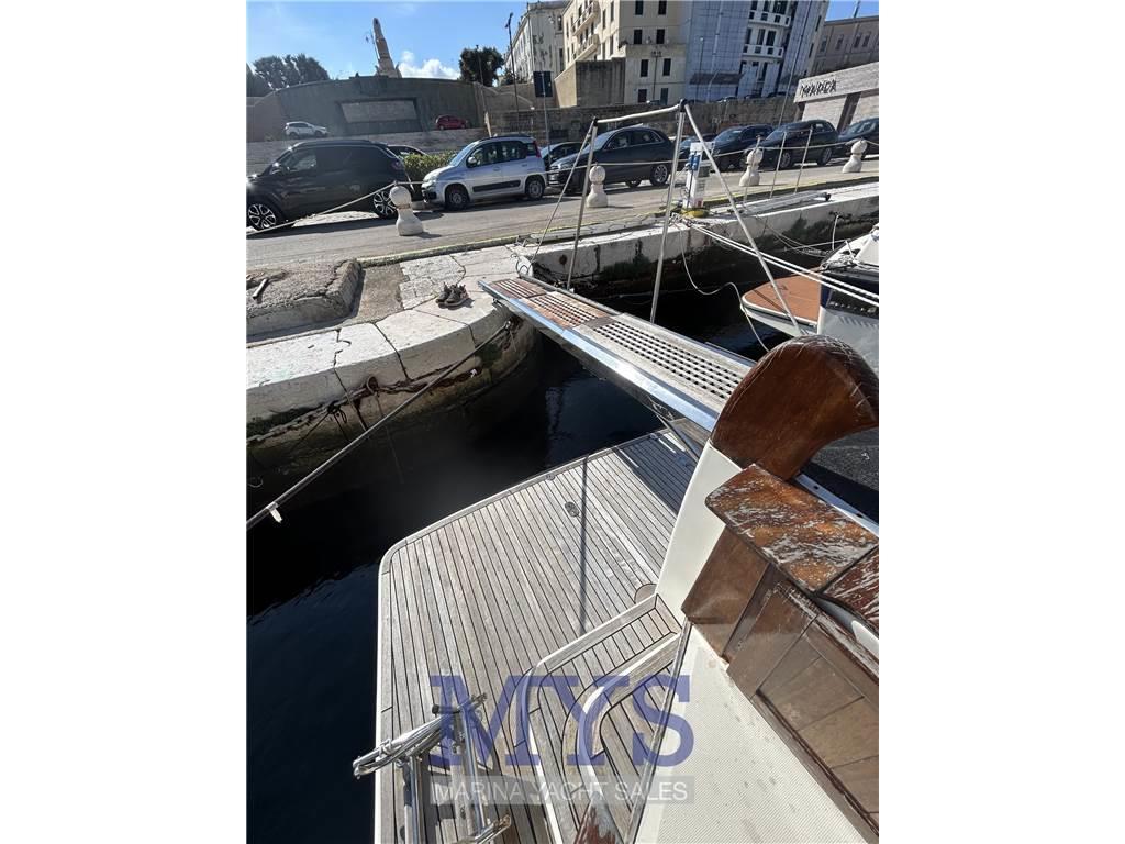 Notas internasCabina armatoriale a prua con letto matrimoniale a penisola e bagno privato con doccia Cabina ospiti con letti singoli in piano 2° cabina ospiti con letti a castello Cucina completa di lavello, frigo, ghiacciaia, piastra in vetroceramica e forno a microonde Dinette con divano e tavolo da pranzo trasformabile Interni in mogano e pavimenti in legno Notas de la instrumentaciónBussolaAngolo barra GPS Radar Comando motori elettronico Pilota automatico Elica di manovra di prua - bow thruster Salpancora Elettrico con contametri catena Winch tonneggio di prua VHF Tromba Presa di corrente 220v da banchina Caricabatterie Prese interne 12v Prese interne 220v Impianto TV Altoparlanti Stereo Radio AM FM Impianto acque nere Lavatrice Aria condizionata Boiler per l'acqua calda Autoclave Passerella Idraulica Generatore Notas de armamentoAncoraLavaggio catena Tendalino Hard top Scaletta bagno Doccia esterna |