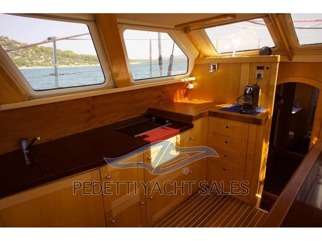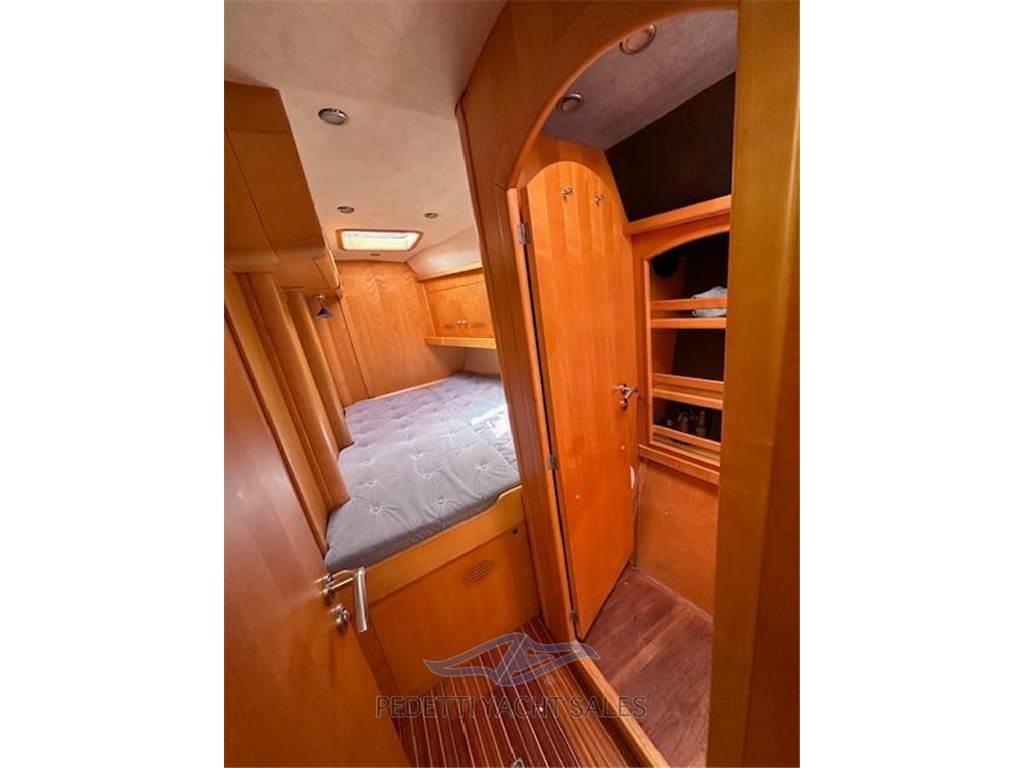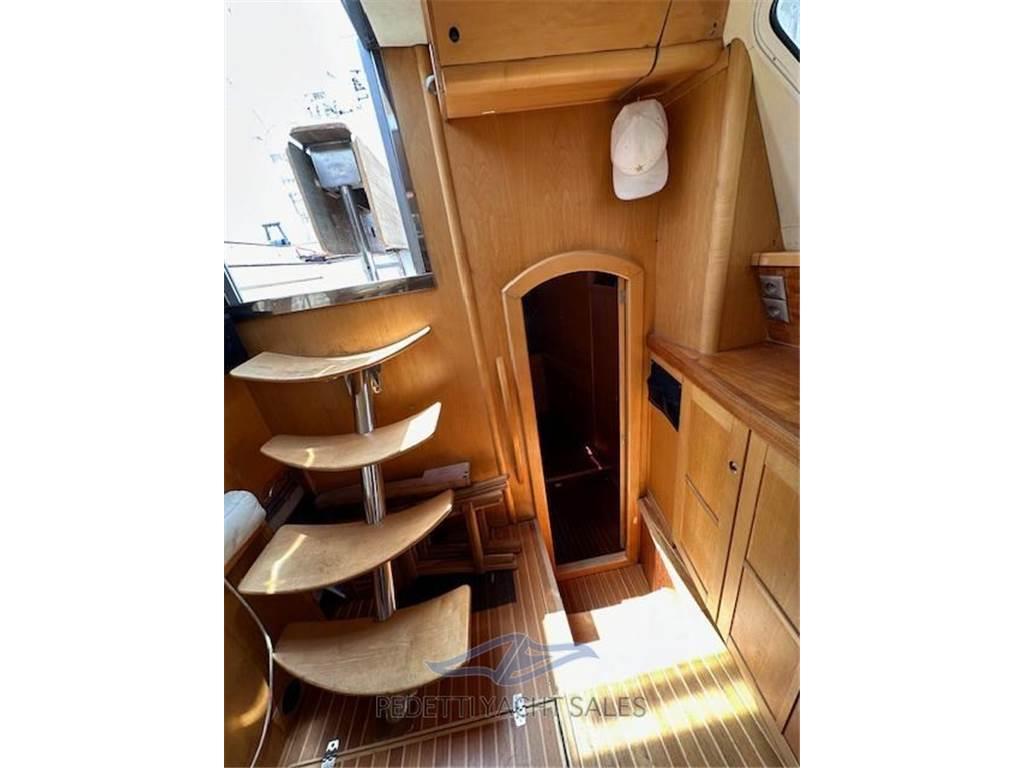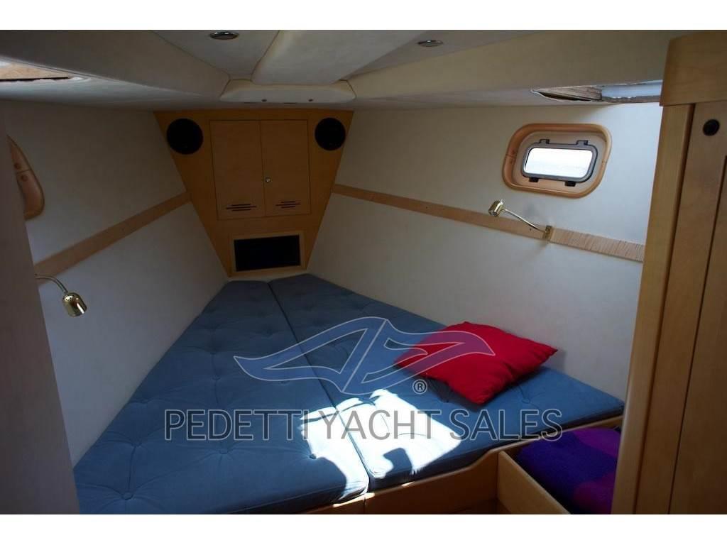 Notas internas2 Matrimoniale italiana, 1 Matrimoniale francese, 1 Doppia in piano, 1 Cucina, 3 Toilette doccia no bidet, 1 Dinette Trasformabile, 4 cabine : tre cabine ospiti a prua, 1 cabina armatoriale a poppa con letto centrale , TV e bagno privato. WC 2 elettrici 1 manuale.