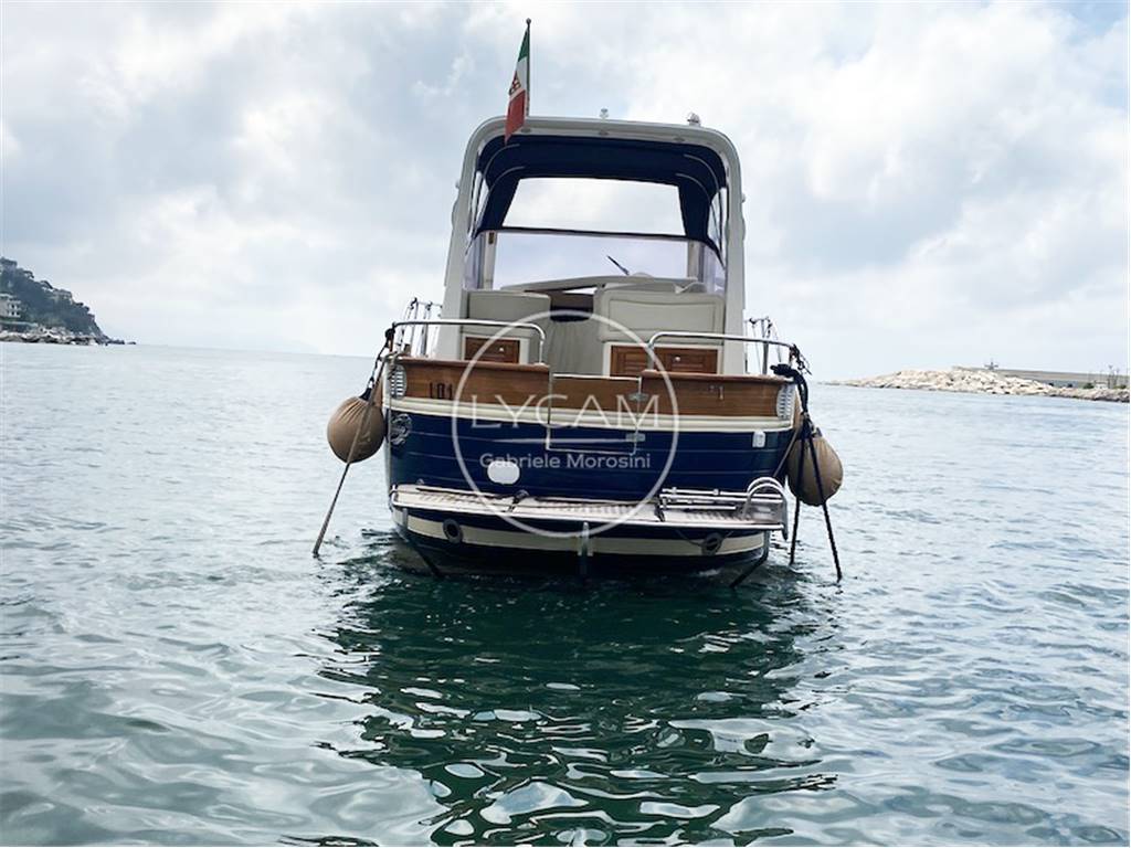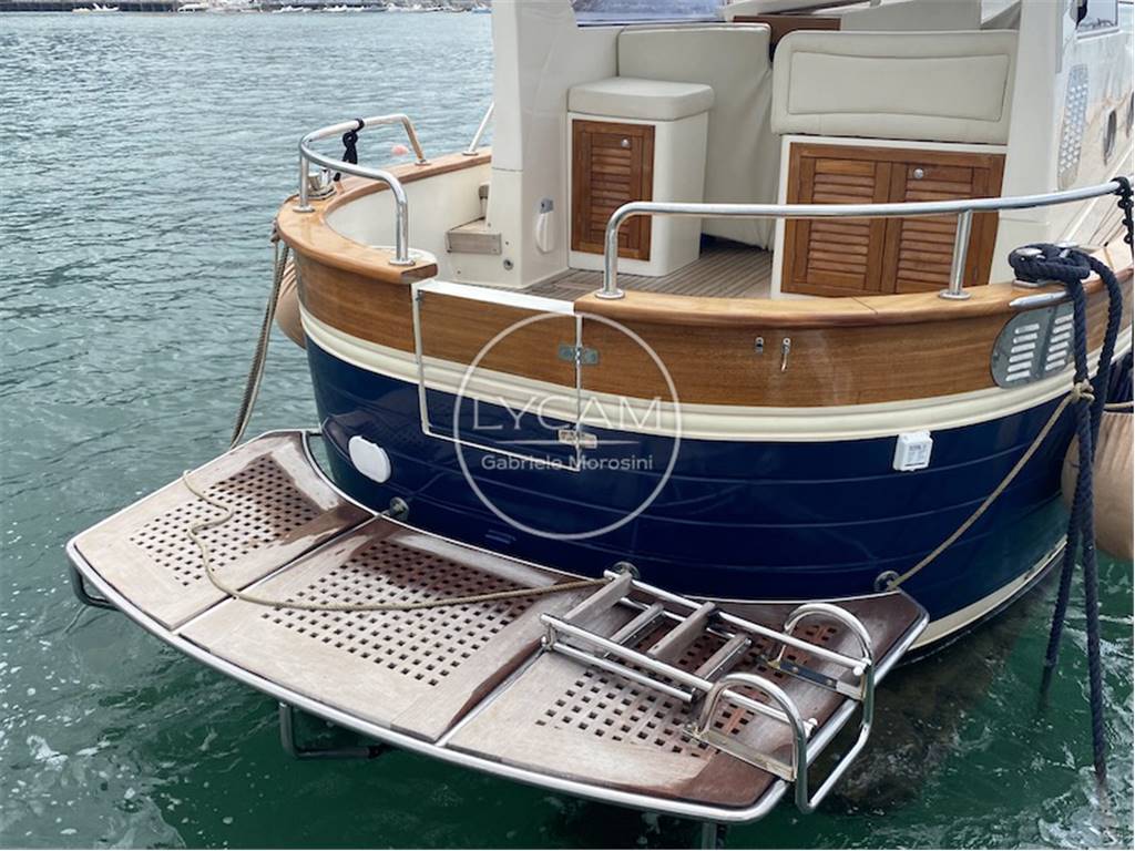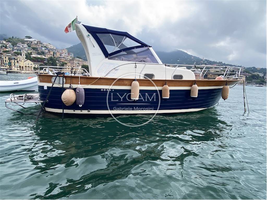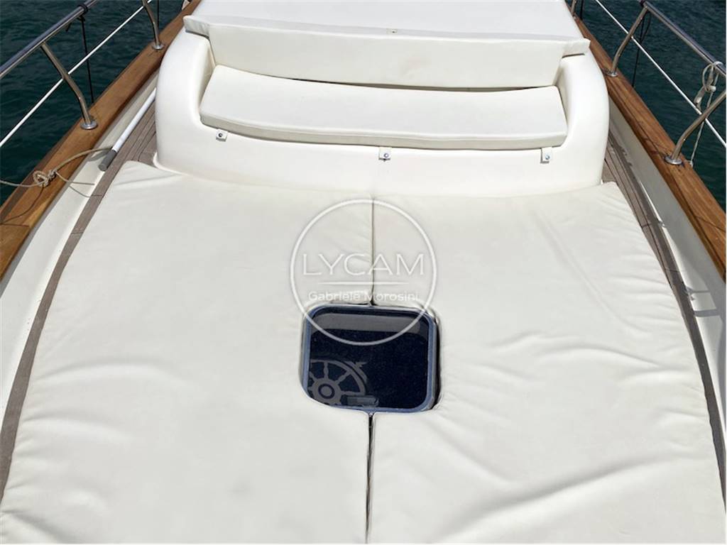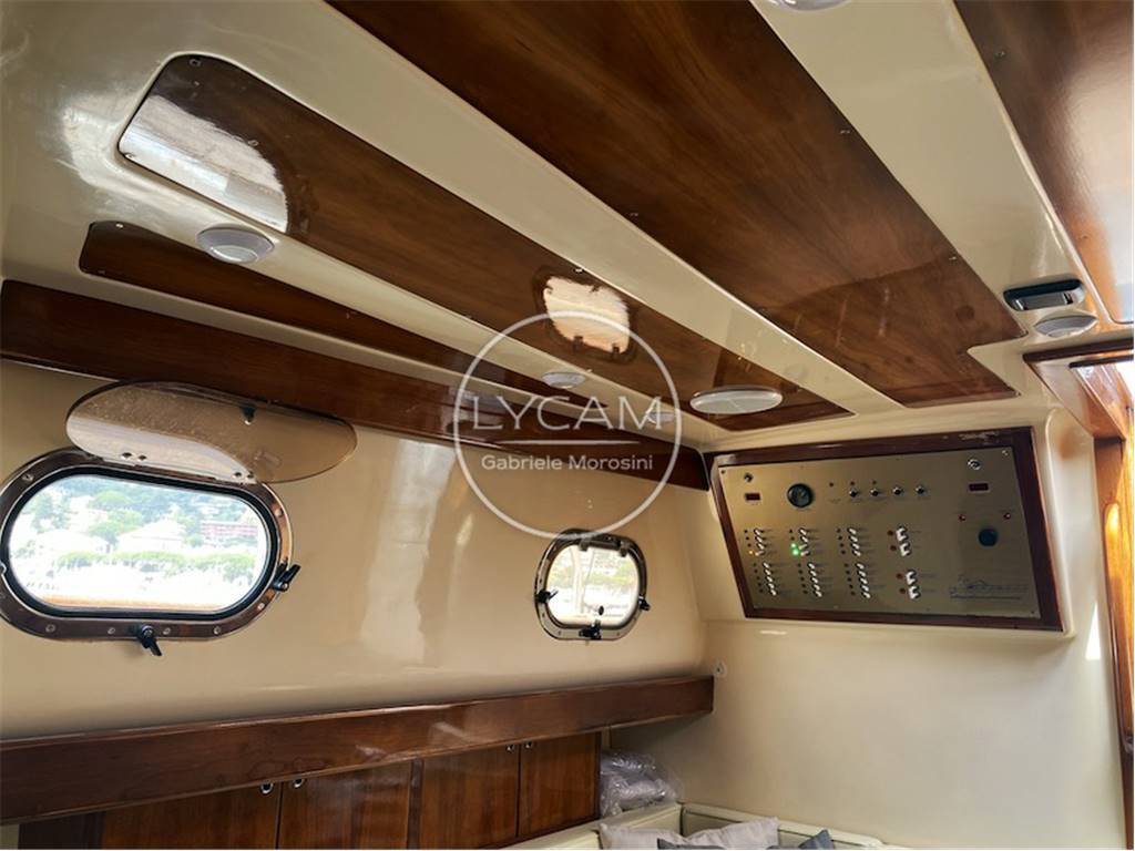 Notas internasAttraverso la comoda plancetta in legno si accede al pozzetto caratterizzato da 2 sedute poste lungo lo specchio poppiero. Procedendo verso prua si trova la plancia di comando sulla dritta e la seduta per il co-pilota su quella di sinistra. La parte prodiera del ponte di coperta è destinato alla zona prendisole. Scendendo sottocoperta dal tambuccio centrale si accede alla dinette con divano L lungo la murata di dritta mentre sul lato opposto vi sono il locale toilette e a seguire il mobile cucina. Proseguendo verso prua si trova il letto armatoriale posto lungo la murata di destra.