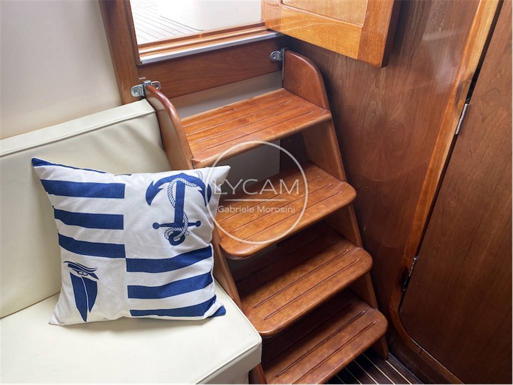 Notas de armamentoLuci di navigazione; Luce di fonda; Bitte di ormeggio; Autoclave; Pozzetto in teak; Plancetta in teak; Scaletta bagno; Doccia pozzetto; Pompe sentina elettriche; Tromba; Tergicristalli; Verricello salpa ancora elettrico; Faro orientabile; Caricabatterie; 2 Batterie motori e servizi; Presa 220V; Inverter; Boiler; Cuscineria completa nuova; Frigo; Lavello mobile bar; Tendalini pozzetto; Musone ancora acciaio; Ancora; Tientibene in acciaio; Mezzomarinaio