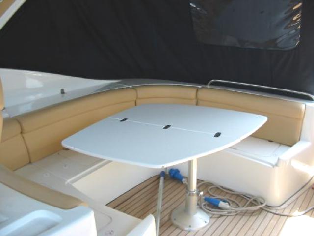 Aire acondicionado, baño o ducha, cargador de baterÃa, fuera de la ducha, hélice de proa, generador, bañera teca, toldos, plataforma de baño de teca, gps Geonav, pasarela eléctrico. |