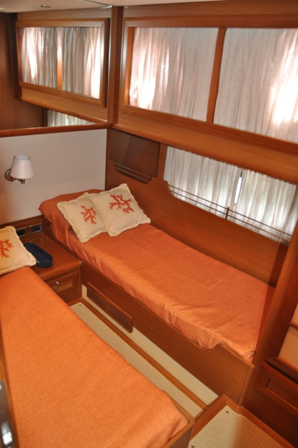 Notas internasAdelante cabina con cama doble y cuarto de baño con ducha. Invitado 2 cabinas dobles con camas individuales con baño y ducha. Cabina con baño. Cocina completa, placa vitrocerámica, horno, fregadero, nevera y congelador. Notas de la instrumentaciónNo. 2 plotter Raymarine C80GPS Radar VHF Brújula Piloto automático Tridata Eco Panel de hombre Nº 3 Esposas de electrónicas Hélice de proa Toma de 12V en el tablero Aletas Notas de armamentoCasco amarilloKoehler 11KW generador-diff de std 9 .0kw Aire acondicionado en todos los ambientes, incluyendo el área de la tripulación CojÃn soláriums Cubierta del púlpito Equipo de seguridad completo Púlpito de la cubierta Hélice/arco maniobrar 8 HP (doble hélice) Cubierta de teca de lado Cubierta de toldo Cabañas puesta en escena Por deformación del cabrestante Persianas de rodillo simples Salon-diff. Pared plana incorporada del TV LCD de 17 '' Hinchador Electrico Marcas de la cadena Cubre amortiguadores al aire libre Sistema de aspiración central Bobina de cable retráctil para toma de muelle |