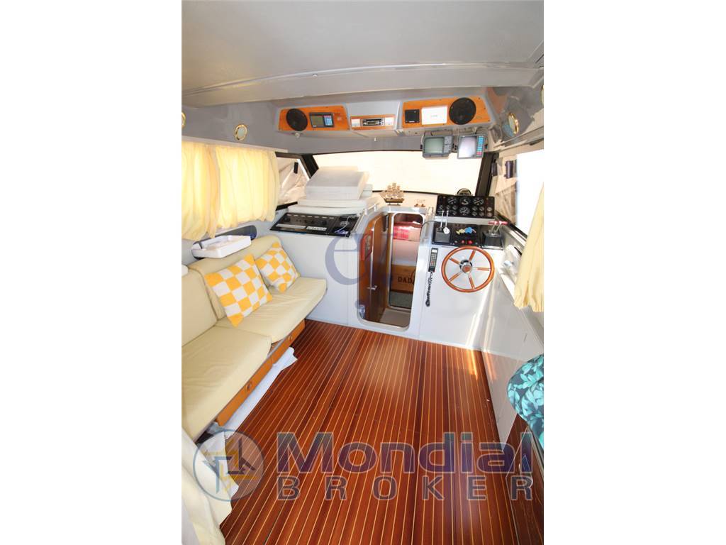 Notas internasCabina ospiti con letti a castello Bagno con wc e doccia. Pozzetto ampio in teak. Dinette convertibile in un comodissimo letto a due piazze, posto di guida a destra, cucina con fornello a gas, frigorifero e lavandino. Notas de la instrumentaciónVHF - GPS - LOG - Stereo - Autopilota - FlapsNotas de armamentoTensione di bordo: 12 / 220 V Batterie n. 4 da 150 Ah - Caricabatterie - Autoclave - Impianto antincendio - Doccia esterna - Flaps Cuscineria prendisole - Copri finestrature esterne + coperture invernali - Passerella manuale - Frigorifero - Doccia esterna - Cuscineria - Boiler - Dotazioni di bordo - Pompa di sentina - Winch ancora elettrico - Ancora bruce - Parabordi e cime. |