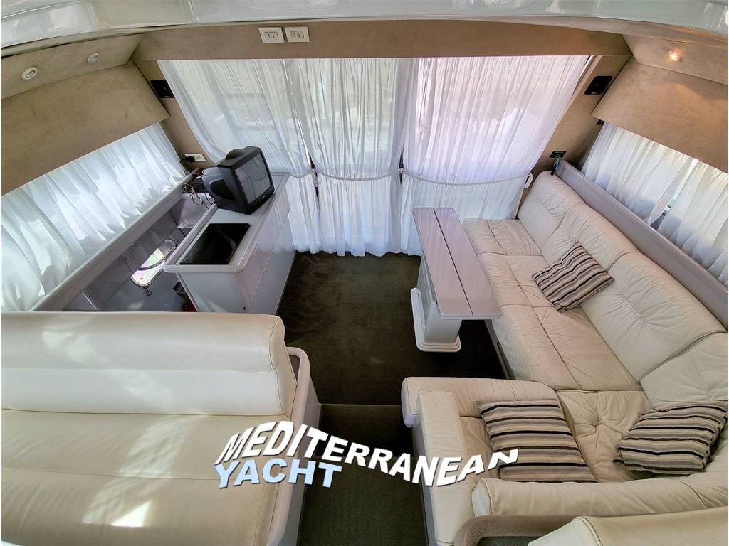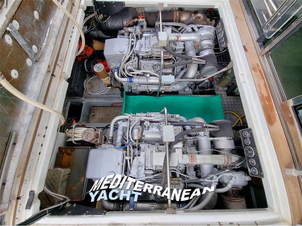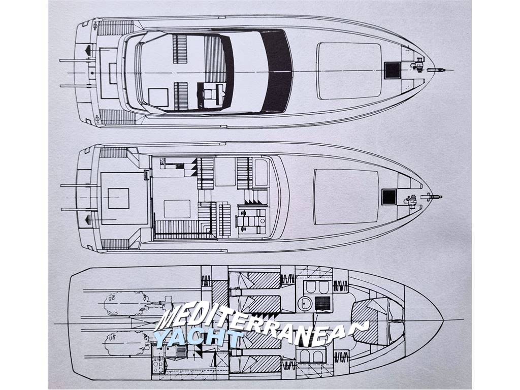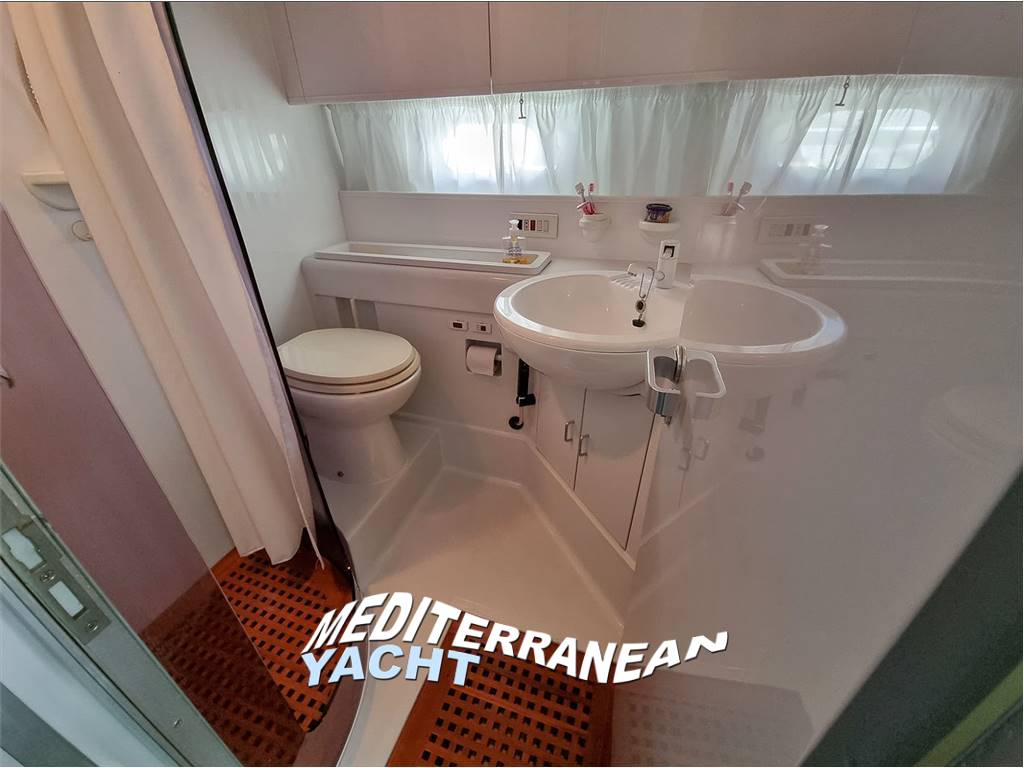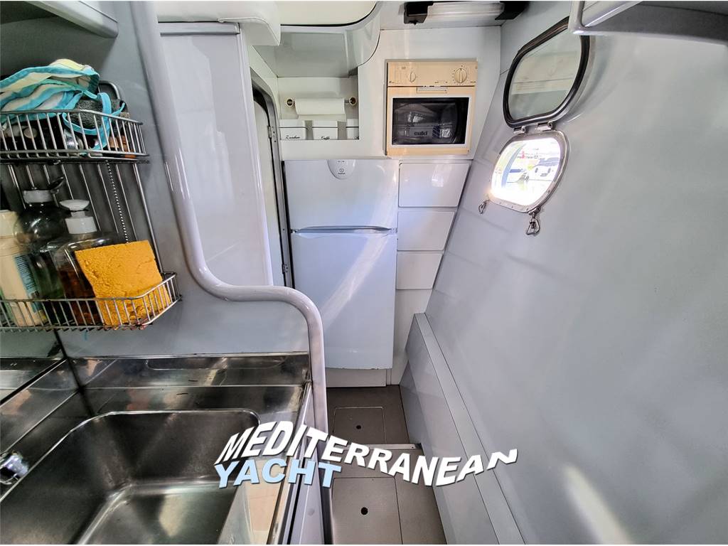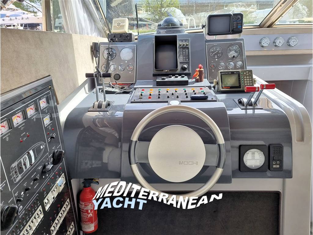 Notas internas- Salendo due gradini sul lato DS troviamo una bella dinette con due divanetti contrapposti e tavolo centrale, plancia di comando contrapposta - La cucina, posta in basso a DS del salone, è munita di piano cottura in vetroceramica quattro fuochi, frigo/freezer a colonna, forno microonde e doppio lavello inox - Cabina armatore a prua con letto matrimoniale e bagno con box doccia - Due cabine doppie con letti in piano - Un bagno con box doccia in comune - Cabina marinaio con servizio, accesso dalla cucina - Interni in laccato grigio, divani in pelle chiara Notas de la instrumentación- Radar Furuno (da controllare)- Autopilota Nautiradar - GPS/plotter Geonav 11 Elite - Ecosonda - VHF Notas de armamento- Generatore- Aria condizionata - Tender Zodiac con motore fb 5 hp - Gruette - Passerella |