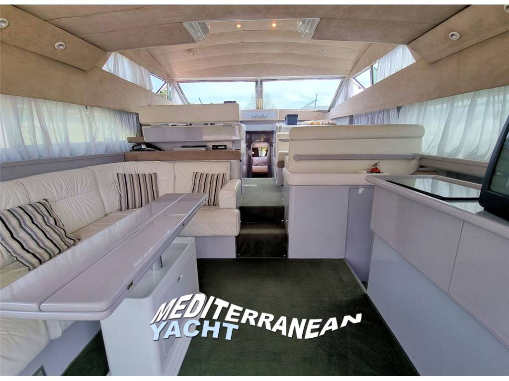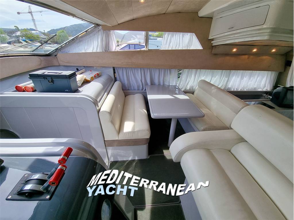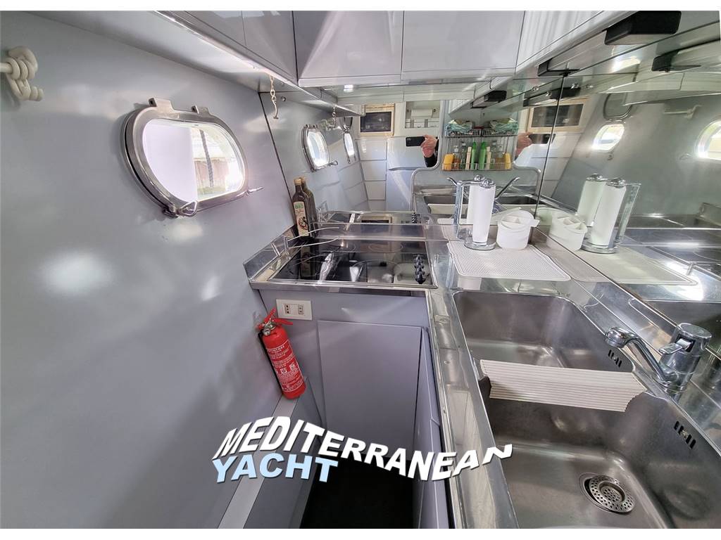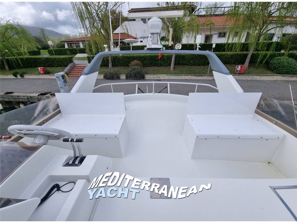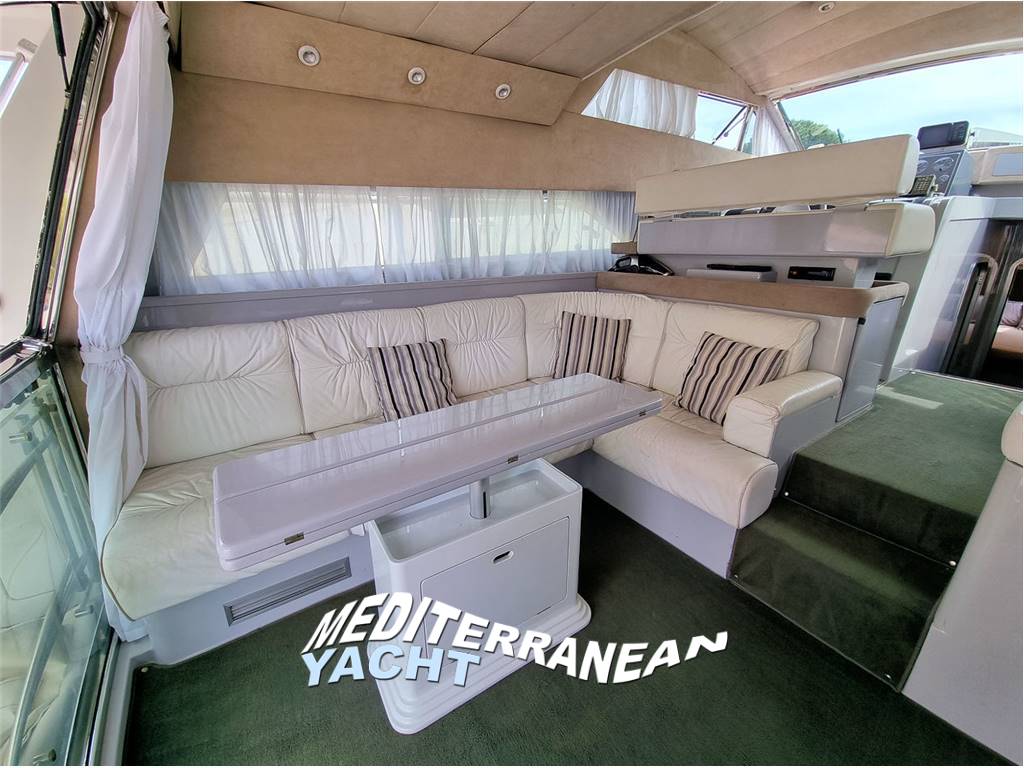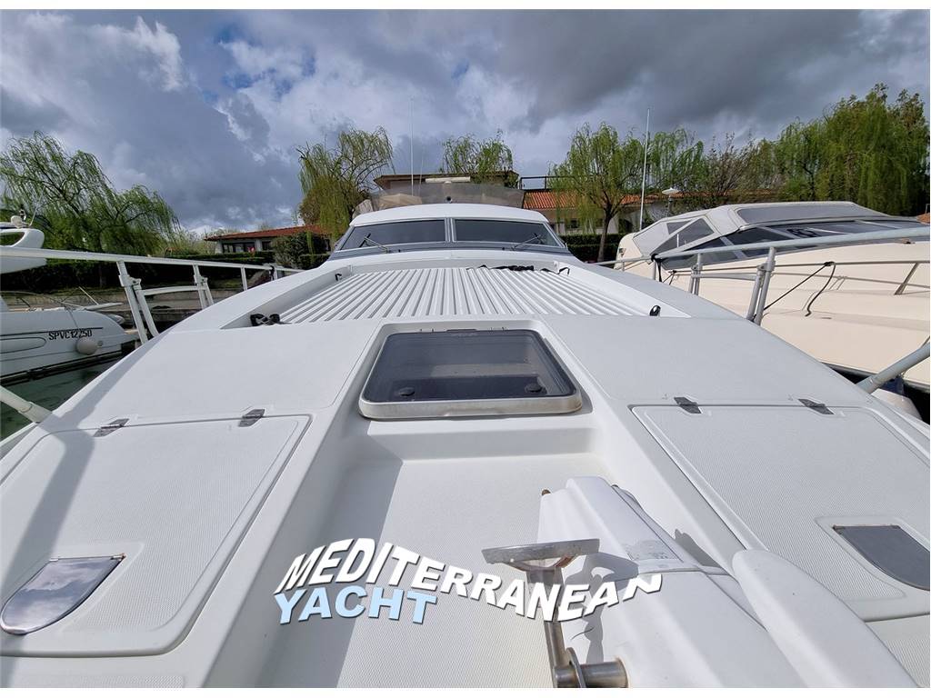 Notas internas- Salendo due gradini sul lato DS troviamo una bella dinette con due divanetti contrapposti e tavolo centrale, plancia di comando contrapposta - La cucina, posta in basso a DS del salone, è munita di piano cottura in vetroceramica quattro fuochi, frigo/freezer a colonna, forno microonde e doppio lavello inox - Cabina armatore a prua con letto matrimoniale e bagno con box doccia - Due cabine doppie con letti in piano - Un bagno con box doccia in comune - Cabina marinaio con servizio, accesso dalla cucina - Interni in laccato grigio, divani in pelle chiara Notas de la instrumentación- Radar Furuno (da controllare)- Autopilota Nautiradar - GPS/plotter Geonav 11 Elite - Ecosonda - VHF Notas de armamento- Generatore- Aria condizionata - Tender Zodiac con motore fb 5 hp - Gruette - Passerella |