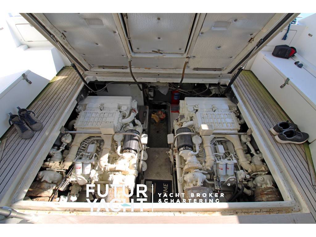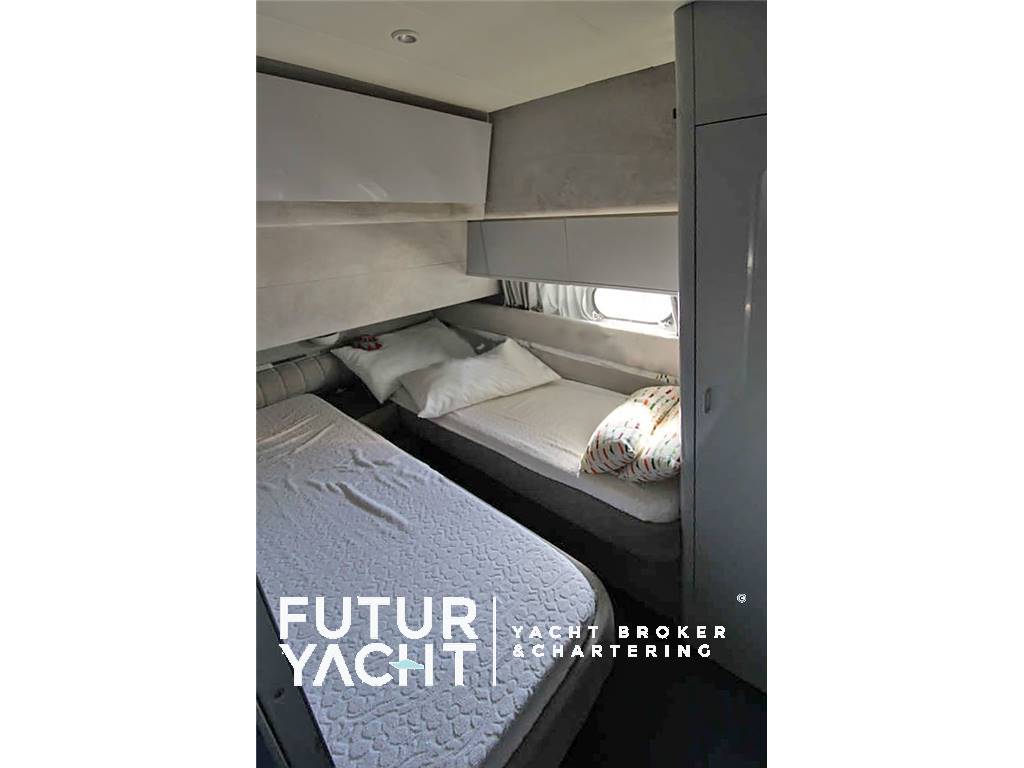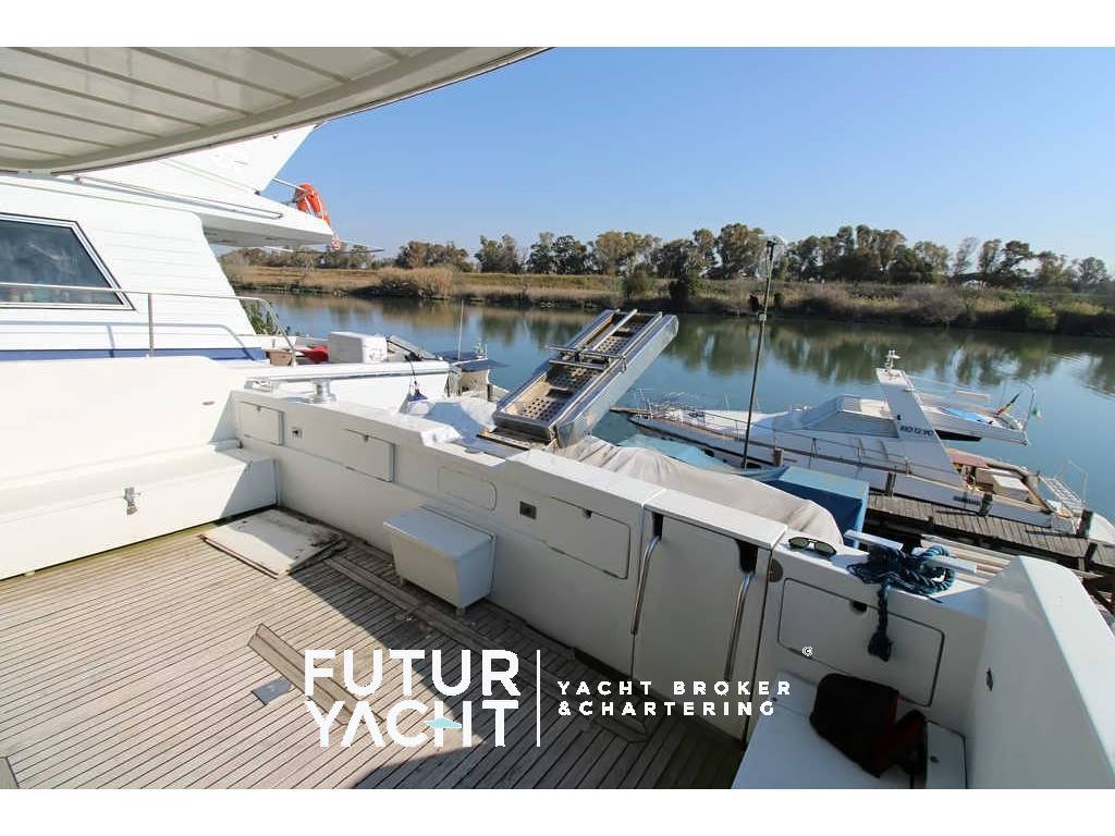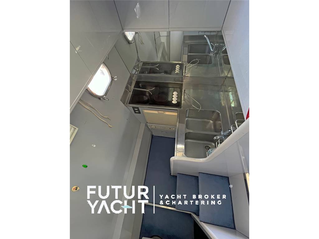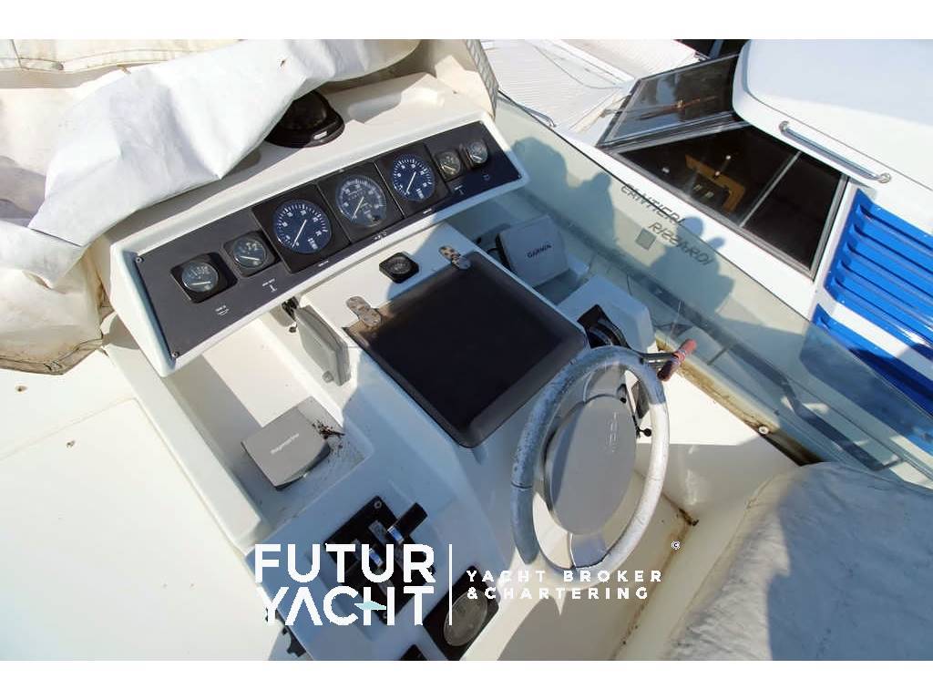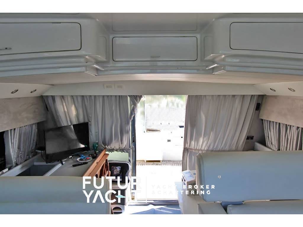 Notas internascabina equipaggio con bagno, cucina. Notas de la instrumentaciónEcoscandaglio (da revisionare) - Gps – Bussola magnetica - Plotter – Radio VH.Notas de armamentoAllestimento tecnico e di coperta:Ancora + Catena ,salpa ancore elettrico, autogonfiabile, passerella idraulica, Dotazioni entro le 50 miglia e due zattere (scadenza 2025), Pozzetto in teak, tavolo a scomparsa in pozzetto, Generatore Onan, Passerella Idraulica, Frigo casalingo, Elica di prua, Tender con fuoribordo, Doccia esterna, Doppia timoneria, Flap idraulici, Impianto antincendio, Indicatori Flaps, Luci di cortesia, Piattaforma, Pompa di sentina automatica, Pompa di sentina manuale, Batterie motori (2), servizi (4) e generatore (1) nuove (novembre 2024), Scaletta da bagno, Tromba, Winch tonneggio di poppa, Winch tonneggio di prua. Dotazioni domestiche di bordo: Prese interne 12v, Prese interne 220v , 2 WC marino elettrico, Impianto acque nere Intrattenimento: Altoparlanti, Stereo, TV. Cucina ed elettrodomestici: Cucina con Congelatore, Cucina, Piastra elettrica, Forno, Frigorifero esterno, Frigorifero interno, Lavastoviglie, Lavatrice. Tappezzerie: Copripozzetto, Cuscineria completa, Cuscineria di poppa, Cuscineria fly, Cuscineria Pozzetto, Teli copri finestra, Telo Copertura Fly, Telo copriconsolle, Telo coprisedile, Tendalino. |
