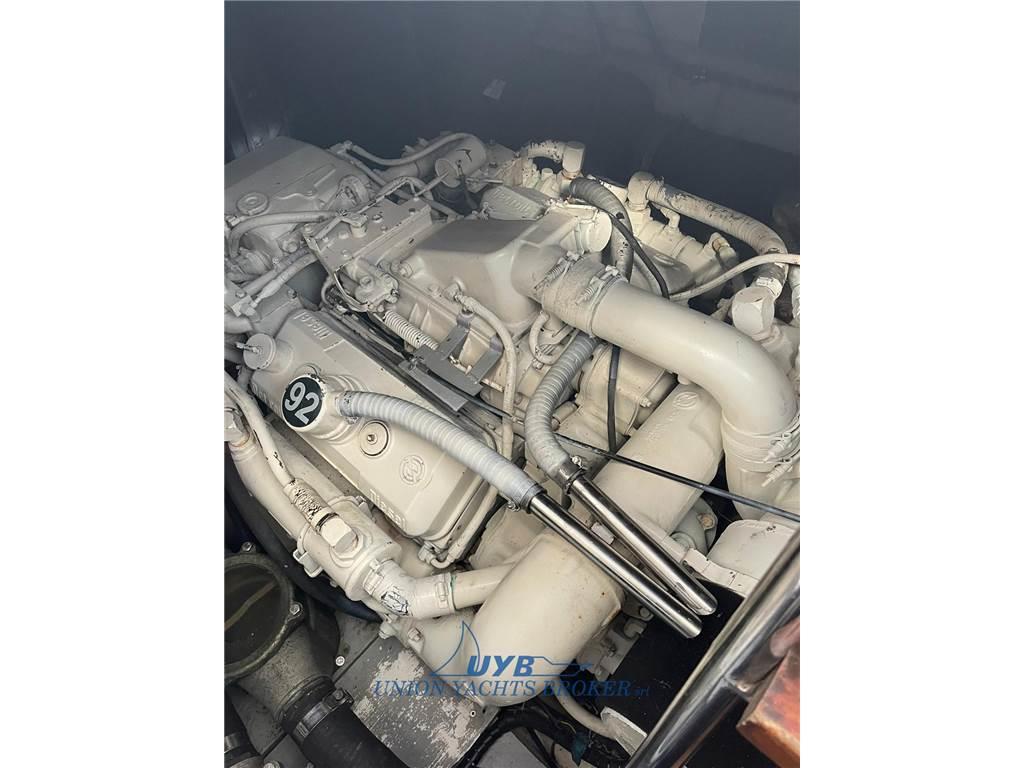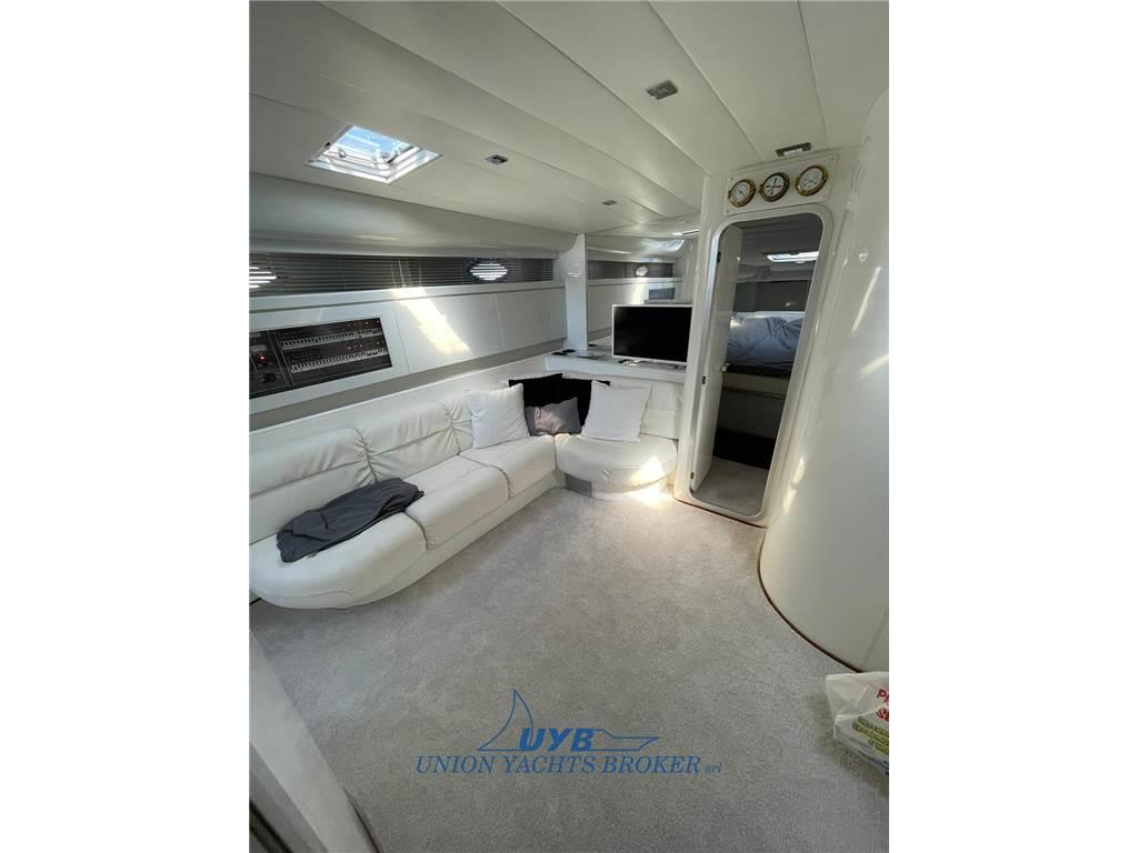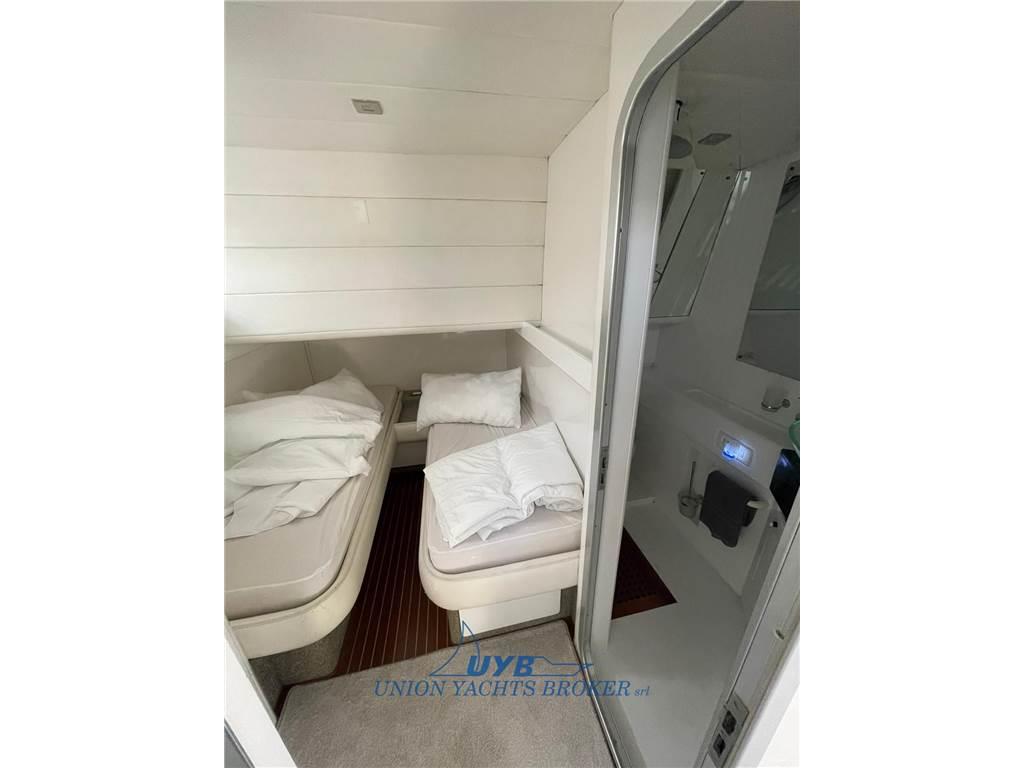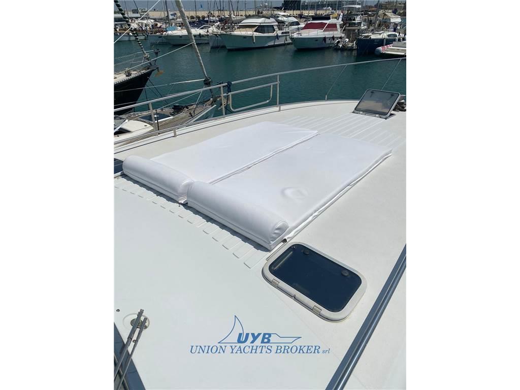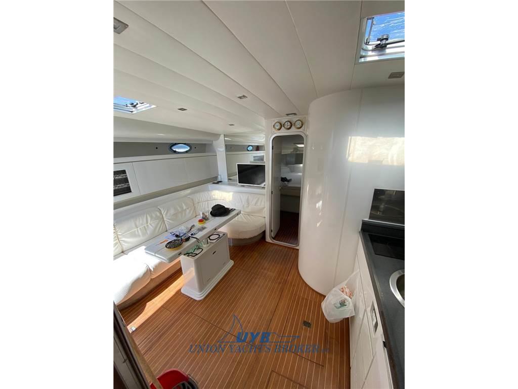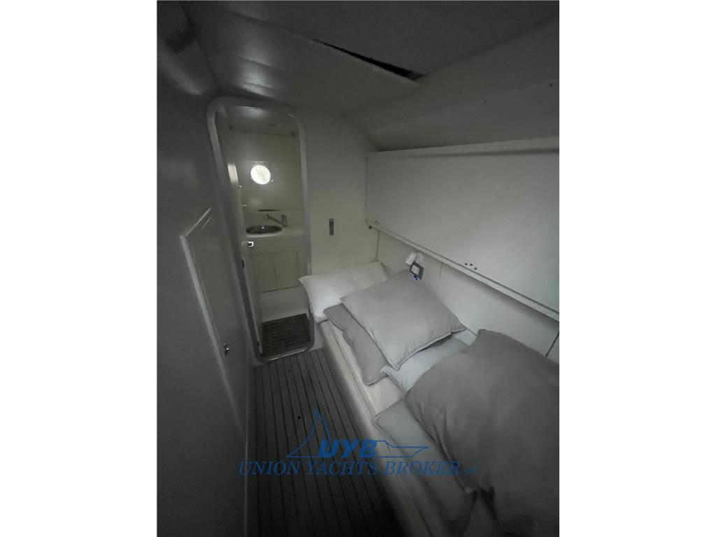 Notas internasNotas de la instrumentaciónBussola, Ecoscandaglio (Garmin), GPS (Furuno), Log, Radar, Radio VHF.Notas de armamentoAllestimento tecnico e di coperta:Allarme motore, Doccia esterna, Elica di poppa - stern thruster, Elica di prua - bow thruster, Flap idraulici, Passerella (Besenzoni), Piattaforma (strutturale), Pompa di sentina elettrica, Presa 220V banchina, Salpa Ancore Elettrico, Scaletta da bagno, Tavolo pozzetto (abbattibile). Dotazioni domestiche di bordo: Aria condizionata. Intrattenimento: Impianto TV, Stereo, 2 TV. Cucina ed elettrodomestici: Cucina, Frigorifero esterno, Frigorifero interno, Microonde, Piastra in vetroceramica. Tappezzerie: Cappottina, Cuscineria di prua, Cuscineria Pozzetto, Tendalino. |