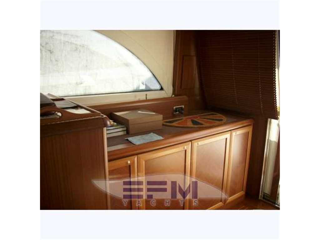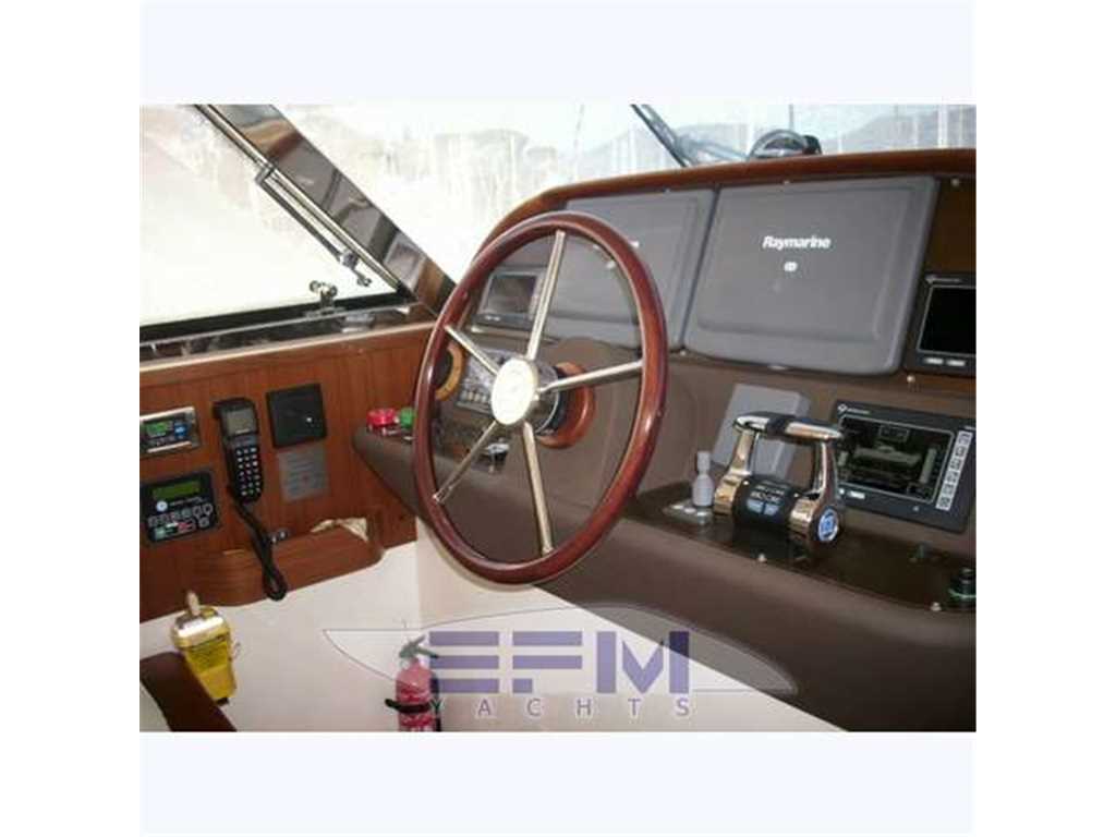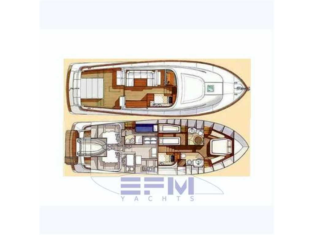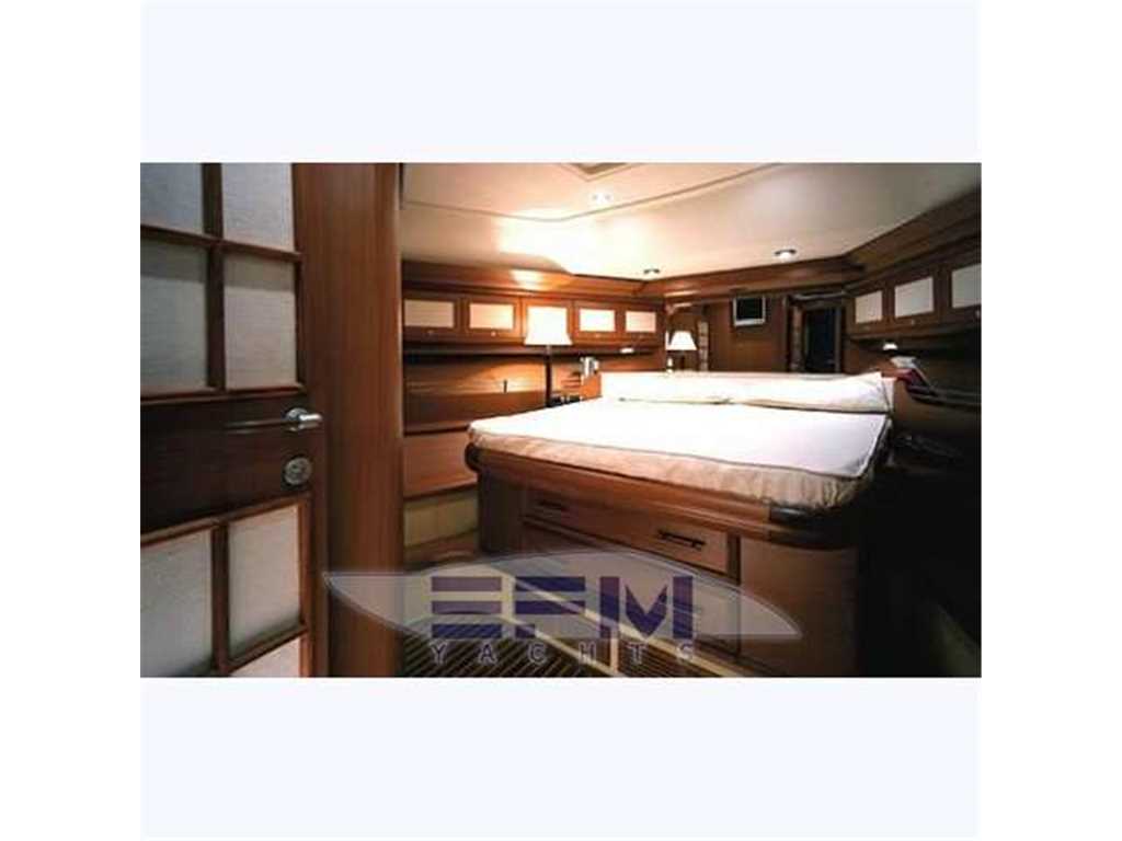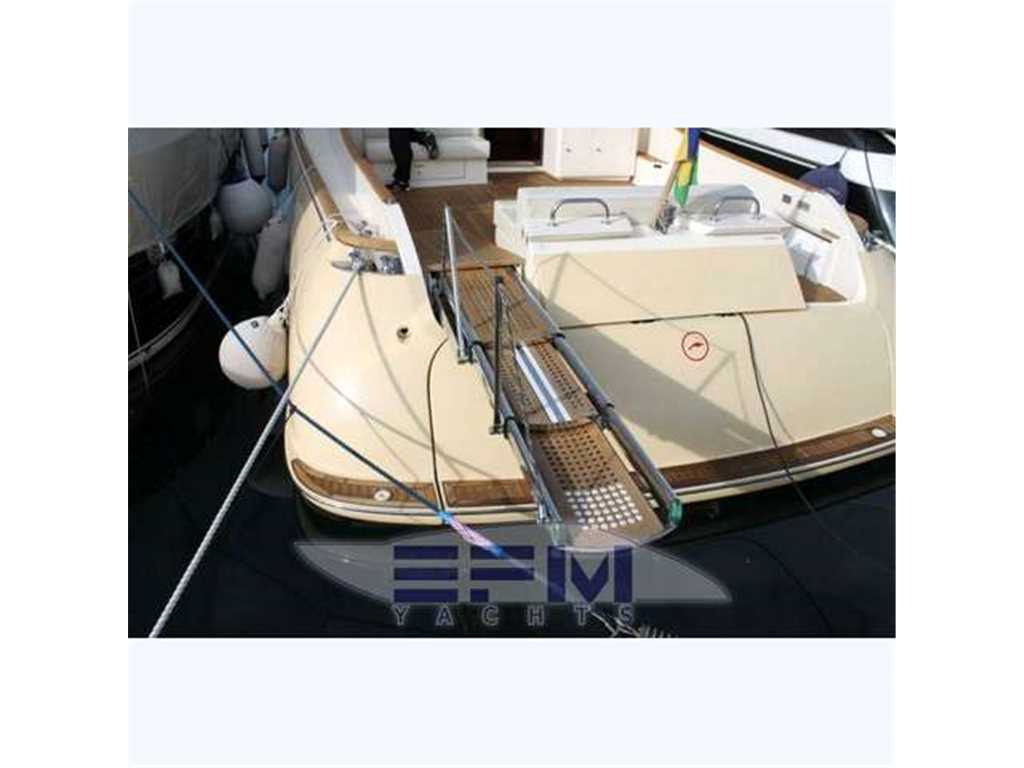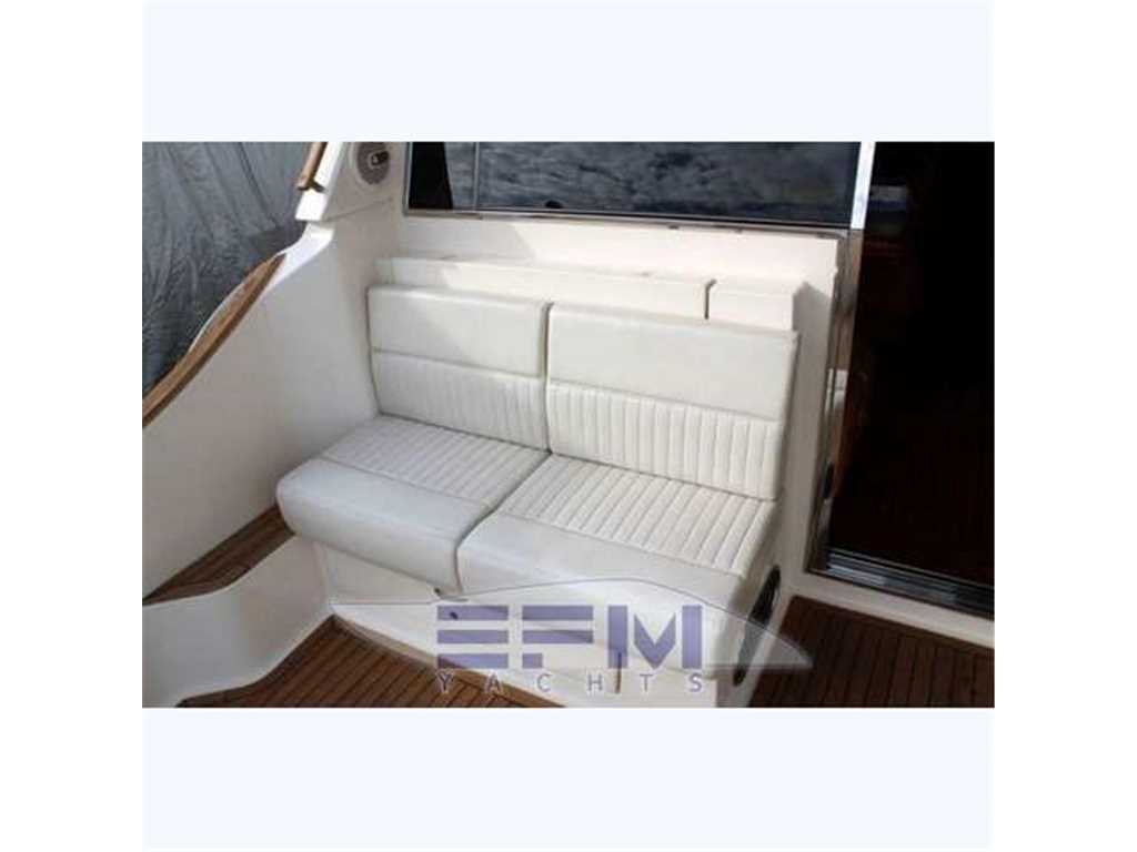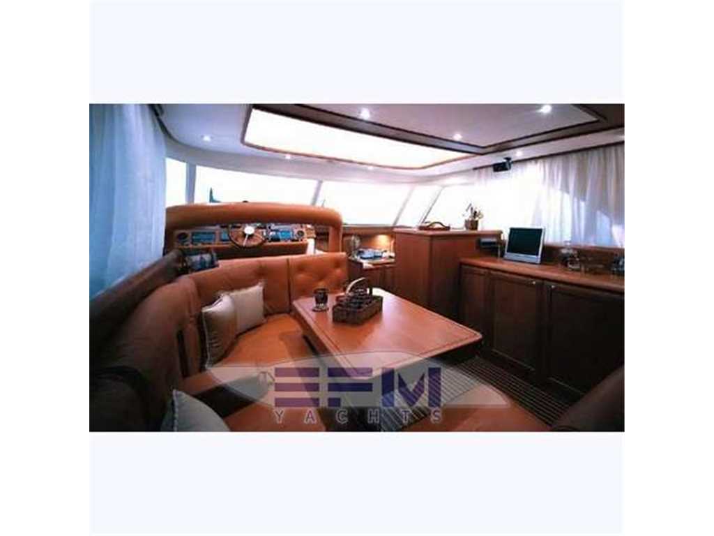 Classic interior and very well cared for with high quality finishes throughout in oak wood flooring, teak flooring and leather sofas beige color . 2 cabin version with spacious master stateroom forward with island double bed with 2 drawers, wardrobe , cupboard and a private bathroom with wooden cabinet with sink , cabinets, electric toilet, bidet and separate shower with glass crystal - in the hallway we find the second cocaine guests left with 2 twin beds, wardrobe and cupboards and with private access from the corridor and the second bathroom complete with wood cabinet with sink , cabinets, electric toilet, bidet and separate shower with door - with a separate entrance through the aft cockpit we find the crew cab with a flat bed , cabinet , sink , toilet and shower, and wanting that can ' be used as a laundry room. On the upper deck, separated from the cockpit by a glass door with double opening , and there ' a unique environment composed left by the large C-shaped sofa in leather and the large rectangular table made ??of solid oak , and opposed to the starboard side of the cabinet service with the retractable LCD TV and more 'forward starboard side of the wheelhouse the kitchen area fully equipped kitchen with Ariston plate ceramic hob with 4 burners, fridge with freezer 80 lt Frigoboat , dishwasher, microwave - to the left is the helm with the 2 seater sofa x rider and copilata and comfortable 2 large windows that open stainless steel in the roof. Grande and spacious teak cockpit that serves as outdoor living area is furnished with a 3 seater seat that converts into a comfortable wishing you great sun , tender garage aft hydraulic opening .