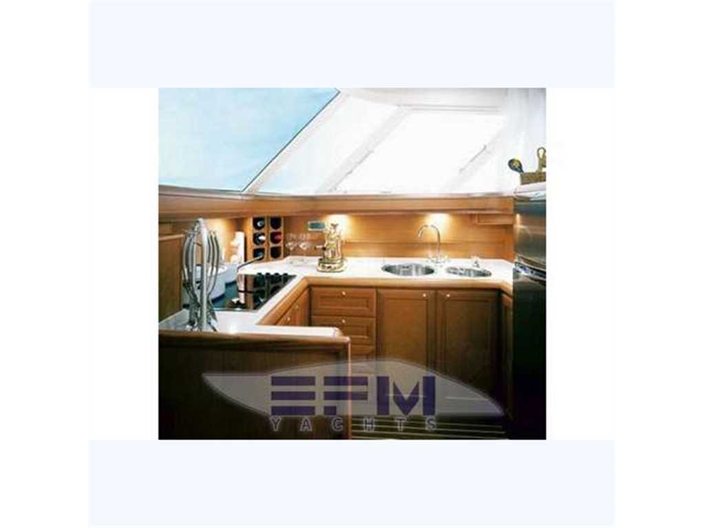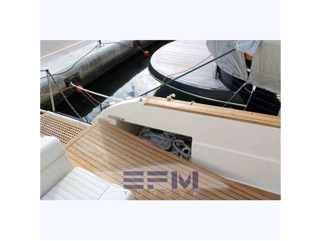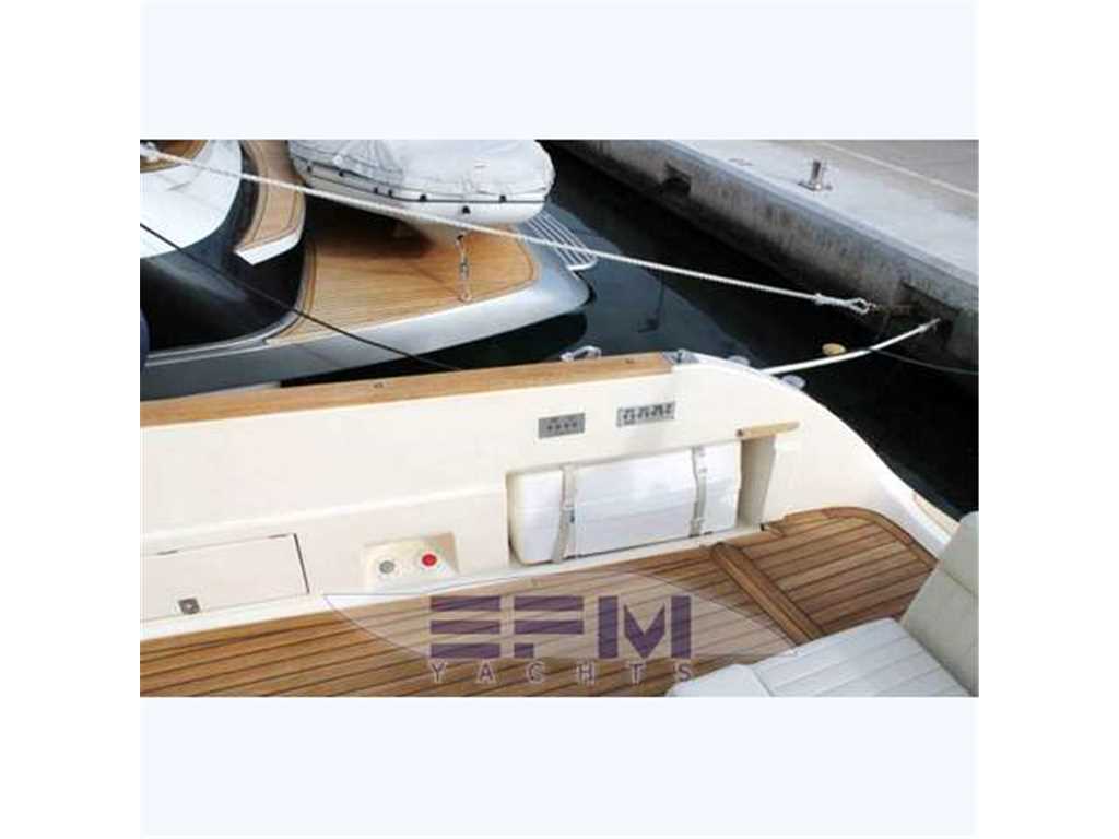 Notas internasInterni classici e molto ben curati con finiture di pregio tutto in legno rovere , pavimenti in teak a listoni e divanerie in pelle color Beige. Versione 2 cabine con spaziosa cabina Armatoriale a prua con letto matrimoniale ad isola con 2 cassettiere , armadio , pensili e con bagno privato completo di mobile in legno con lavabo , pensili, wc elettrico , bidet e box doccia separato con vetro in cristallo - nel corridoio troviamo la seconda caina ospiti a sinistra con 2 letti in piano , armadio e pensili e con accesso privato ed anche dal corridoio al secondo bagno di servizio completo di mobile in legno con lavabo , pensili, wc elettrico , bidet e box doccia separato con porta - Con entrata separata attraverso il pozzetto di poppa troviamo la cabina equipaggio con un letto in piano , armadietto , lavabo wc e doccia , e che volendo puo' essere utilizzata anche come lavanderia. Al ponte superiore separato dal pozzetto da una porta a vetri a doppia apertura, vi e' un unico ambiente composto a sx dal grande divano a C in pelle e dal grande tavolo rettangolare in rovere massello , e con contrapposta a murata di dritta il mobile di servizio con il TV Lcd a scomparsa e piu' avanti a dritta di fianco alla timoneria la zona cucina cucina completa con piastra cottura in vetroceramica Ariston a 4 fuochi, frigo 80 lt con freezer Frigoboat , lavastoviglie , microonde - A sinistra troviamo la timoneria completa con il divanetto a 2 posti x il pilota e copilata e le 2 comode grandi finestrature in acciaio inox apribili nel tetto .Grande e spazioso pozzetto in teak che funge da zona living esterna arredato con una seduta a 3 posti che volendo si trasforma in un comodo grande prendisole , Garage tender ad apertura idraulica a poppa .
