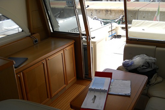 Notas internas1 cabina con 2 baños cocina con vitrocerámica bosch Nevera Candy Candy daewoo horno micro Lavadora Ariston Aire acondicionado Condaria Clima calentamiento Condaria Reproductor de DVD de Bose Sistema estéreo Bose Notas de la instrumentaciónpiloto automáticoradio Marina vhf de Simrad 11 c gps radar furuno Eco satelite transmisor de emergencia Notas de armamentoPasarela de 3 etapas de BeenzoniGenerador de helice de proa de Mase 12 torno de popa aleta licitación Arimar equipo de seguridad 2 balsas 8 extintores amcora con cadena solarium de proa teca cabina equipada con refrigerador y parrilla plataforma de TECMA tanques de agua gris y negro |