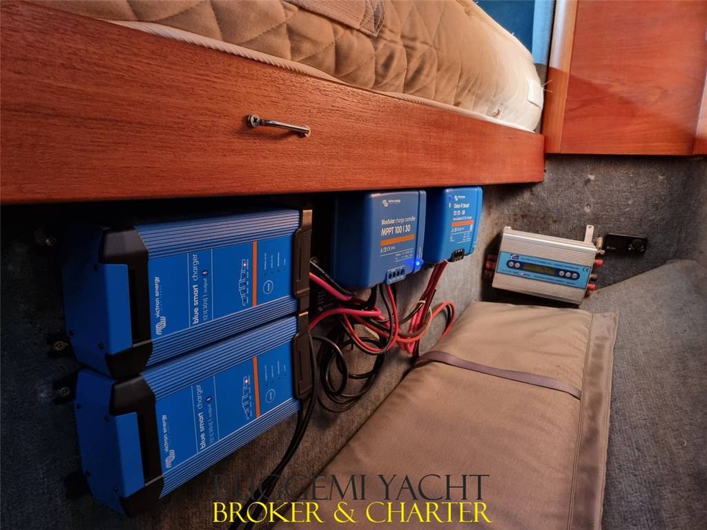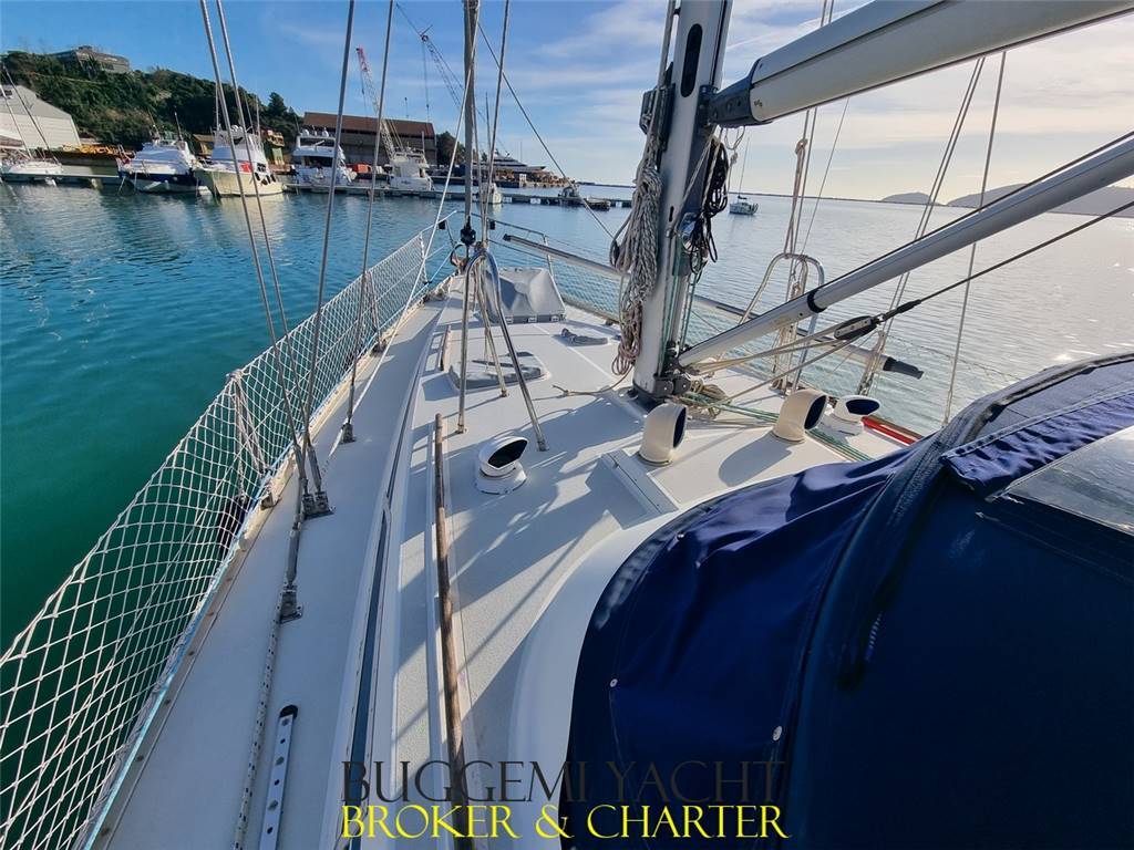 Notas internasCabina passaggio poppa/prua Interni in condizioni generali buone Bagno di poppa con wc manuale e revisione pompa 2024 Bagno di prua con sistema Airhead Composting toilet in alternativa a cassa acque nere Ventilatori 12 V in tutte le cabine e dinette Tutte luci LED Notas de la instrumentaciónStrumentazione elettronica completamente sostituita nuova 2014/2015Raymarine MDF E 125 HybridTouch con radar integrato al tavolo da carteggio e Wi-Fi per tablet. 3 carte SD Navionics per quanto sopra, Regno Unito, Europa centrale e occidentale, Caraibi e Mediterraneo. Radar a antenna Raymarine sull’albero. Riflettore radar. VHF Icom M505 con DSC, antenna in testa all’albero. Cornetta vhf di comando remoto Icom. VHF portatile Icom. SSB Icom M801E DSC con modem Pactor SCS P4 DR-7400 con Bluetooth per la connessione a un laptop, antenna montata a poppa, antenna DSC. AIS Il transponder AIS Icom MA 500TR ha un proprio display ed è collegato al Raymarine HybridTouch tramite Seatalk, antenna GPS a cupola. Stazione del vento Display principale Raymarine ST 60 collegato tramite Seatalk a HybridTouch. Ecoscandaglio e log Raymarine ST60 display in pozzetto collegato tramite Seatalk a HybridTouch. AutoPilota Evolution Ray Marine, azionamento lineare meccanico, p70 control head in pozzetto collegato a HybridTouch tramite Seatalk può anche essere controllato al tavolo da carteggio da HybridTouch. Antenna NAVTEX ICS 6 a poppa. Estensione Wi-Fi Bullet nuovo 2017 con router. Orologio, barometro e termometro/igrometro nuovi 2014/2015 Lettore CD/radio con altoparlante al tavolo da carteggio e dinette. Notas de armamentoPROPULSIONE:Motore e invertitore nuovi settembre 2015 BETA 50hp Asse elica sostituito nuovo 2015 Tenuta asse Tides Marine SureSeal nuova 2021 con scorta installata sull’asse. Nuova elica flex-o-fold nel 2024. EQUIPAGGIAMENTI: Timone a vento Hydrovane Self Steering, nuovo 2016, può fungere anche da timone di emergenza. Sartiame sostituito nel 2014. Riscaldatore diesel Autoterm 4D con 3 uscite tipo Webasto. (Nuovo con tutti i pezzi ma non completamente finito di installare) Fuoribordo elettrico nuovo 2023 ePropulsion Spirit 1.0 Evo ePropulsion solar panel, ePropulsion solar charger per la ricarica con energia solare della batteria del fuoribordo Valvole di scarico TruDesign nuove per sostituire tutte le valvole di scarico, 3 installate. I bulloni della chiglia sono stati sostituiti nel 2012 per precauzione. Sprayhood Bimini con chiusura completa del pozzetto con cerniera sui lati esterni e paraspruzzi nuovi 2015. Copertura timone Tavolo pozzetto pieghevole in teak. Cuscini pozzetto 4 Frigorifero 12v ricostruito nel 2015 con isolamento extra e freezer separato Compressore frigo Penguin nuovo 2015. Revisionato nel 2024 Piastra freezer Penguin 2015. Cucina a gas nuova 2013. 2 bombole di gas. Depuratore d’acqua General Ecology Seagull sotto il lavandino, Filtro a carbone in linea nuovo 2018 ANCORAGGIO: Verricello Maxwell MOD HRC10 nuova 2015. Ancora Rocna 25 nuova 2015. Catena dell’ancora 100 metri nuova 2018 Ancora Fortress FX- 23 nuova 2015 usata solo poche volte. Ancora Delta di scorta non usata. ELETTRICITA’: Battery Monitor Victron BMV-712 con connessione Bluetooth ai caricabatterie 2 caricabatterie Victron 30A 12v Regolatore di carica solare Victron con sensore di temperatura Caricabatterie Victron 12v/12v per batteria di avviamento (mantiene carica la batteria di avviamento dalla batteria domestica e dall’energia solare) Isolatore galvanico Victron per alimentazione da terra Pannello solare personalizzato Solbian con connessione extra per pannello pieghevole 2022 Generatore eolico Silentwind con regolatore di carica ibrido 600 display multifunzione. Batterie servizi 400 Ah Motore 130 Ah VELE E SARTIAME: Rollafiocco Harken nuovo 2014. Randa rollabile. Vele dacron: Randa, Genoa (revisionate nel 2022) Spinnaker: completo con tangone e calza spinnaker. Sartiame 2014 SICUREZZA: KANNAD MARINE EPIRB 406 Nuovo 2015 Zattera di salvataggio Ocean Safety per 4 persone Ocean ISO in contenitore montato nella culla a poppa 2015. Ancora galleggiante Ocean Brake serie Drogue nuovo 2015. Jackstays – Lifeline 4 imbracature di salvataggio con cime di sicurezza Pompa di sentina automatica. 6 giubbotti di salvataggio per adulti + 2 per bambini, 2 adulti spinlock con imbracatura, 2 adulti Baltic con imbracatura, 2 adulti Ocean Safety, 1 Seago Junior, 1 giubbotto di salvataggio di tipo galleggiante per bambini. Segnali diurni per ancoraggio, vela a motore. 3 Estintori + 2 coperte antincendio. |