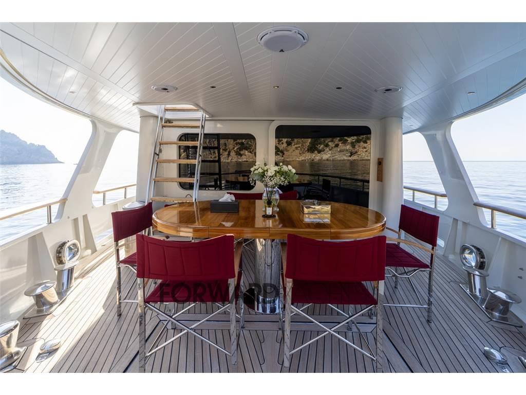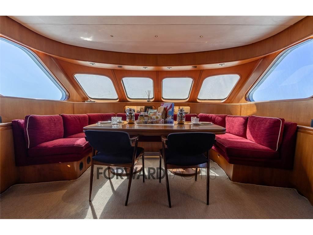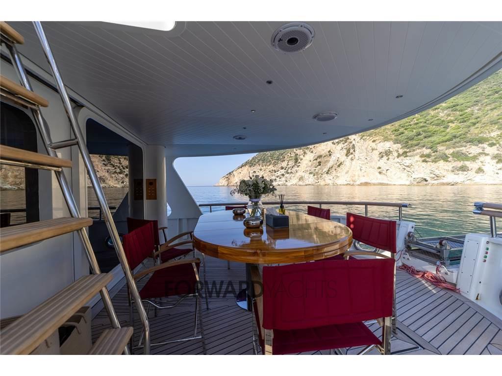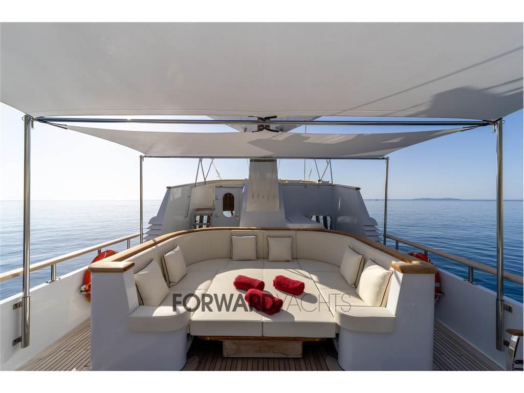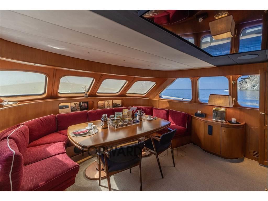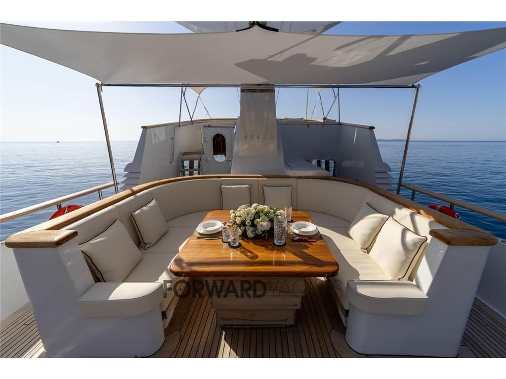 Notas internas- Ampia cabina armatoriale a centro barca indipendente con bagno privato completo; - N.2 Cabine ospiti doppie con letti alla francese + letto pullman a murata e relativo bagno indipendente per ciascuna cabina; - Cabina equipaggio doppia a prua con letti a castello; - Cucina completa a costituita da: piano di lavoro, doppio frigo, forno, microonde, piastra vetroceramica induzione. Notas de la instrumentaciónStrumentazione:- Bussola magnetica - Bussola elettrica Simrad, nuova 2016 - Ecoscandaglio Simrad - Log Simrad - Stazione del vento Simrad IS 20 - VHF 1 Sailor RT 4722 DSC Duplex, 1 Sailor HC 4500 MF/HF - Pilota automatico Simrad AP 25 - Indicatore angolo di barra Simrad RI35 - Radar 1 Simrad 6 kW 1 Simrad 3 kW nuovi 2016 - GPS Simrad - Plotter 2 schermi Hatteland nuovi 2016 - Navtex Furuno NX-500 (cartaceo) - Telecamera CCTV con monitor in timoneria Notas de armamentoAccessori:- Generatori nuovi MASE 2024 - Motori Nuovi BAUDOIN 2024 - Dissalatore Nuovo IDROMAR 180 l/h - Impianto di aria condizionata nuovo 2024 - |