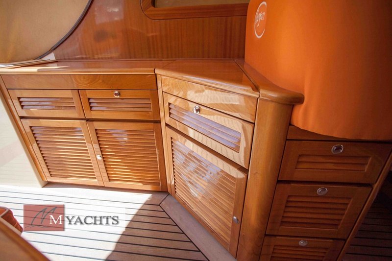 Notas internasNotas de la instrumentaciónPiloto automático Simrad AP16, Furuno Gps NAV Net con función usuario y Vhf Icom, Radar, Joystick de Volvo,Notas de armamentoGenerador Kohler, aire acondicionado, hidraulica, 2 nevera slideOut, toldo, amortiguadores de cabina para la cabina y arco Sumbrella con campanas, luces de cruce bajo la popa cadena de plataforma, pero Bruce y acero inoxidable de cierre |