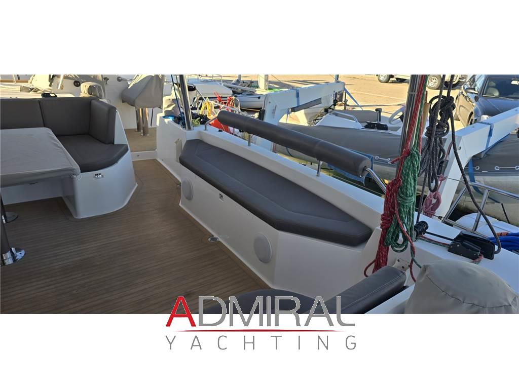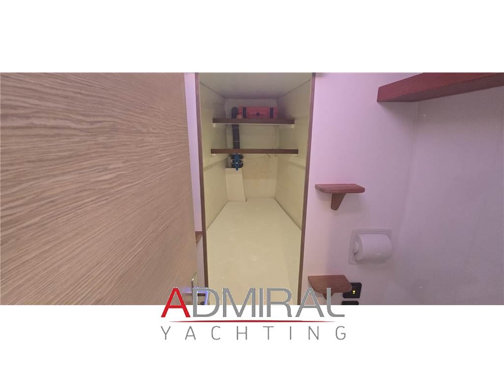 Notas de armamentoAncora (FALCON maggiorata con 100 mt. di catena + 60mt. di cima), Altoparlanti (interni/esterni), Aria condizionata (caldo/freddo), Autoclave, Batterie (servizi VICTRON AGM 6x165ah - motori VICTRON AGM 2x110ah - generatore 100ah), Boiler, Bompresso, Caricabatterie (MASTERVOLT 100A), Clima reversibile, Contametri catena (QUICK sulla timoneria sx), Copripozzetto (invernale/estivo), Cuscineria completa, Dissalatore (DESSALATOR 260 L/h - 220V), Elica di prua - Bow Thruster (MAX POWER 15kW), Fiocco steccato autovirante (2024), Generatore (ONAN 9.5 kW), Gruette per tender, Impianto acque nere, Impianto stereo (FUSION), Impianto TV, Inverter (VICTRON 3KW), Jennaker con frullo, Lazy bag, Lazy jack, Luci sottoscafo, Oscuranti, Pannelli solari, Passerella (2024), Pompe di sentina automatiche, Pozzetto in Teak (sintetico) Prese interne 12v, Prese interne 220v, Sartiame spiroidale, Salpa ancore elettrico (QUICK), Serbatoio Acque Nere, Tavolo dinette abbattibile, Tavolo pozzetto, Telecamere (4), Teli copriconsolle, Teli copri finestre, Teli coprisedute, Tender SUR MARINE 3,70m - Motore SUZUKI 30HP (con copertura tubolari e copertura totale 2024 / Batteria 2024 / Impianto elettrico 2025), Tetto elettrico, TV a scomparsa, WC marini elettrici (4), WC marino manuale (1), Winch (2) LEWMAR, Winch elettrici (2) LEWMAR, Winch tonneggio di prua, Zanzariere, Zattere (ARIMAR 2 x 8p)
