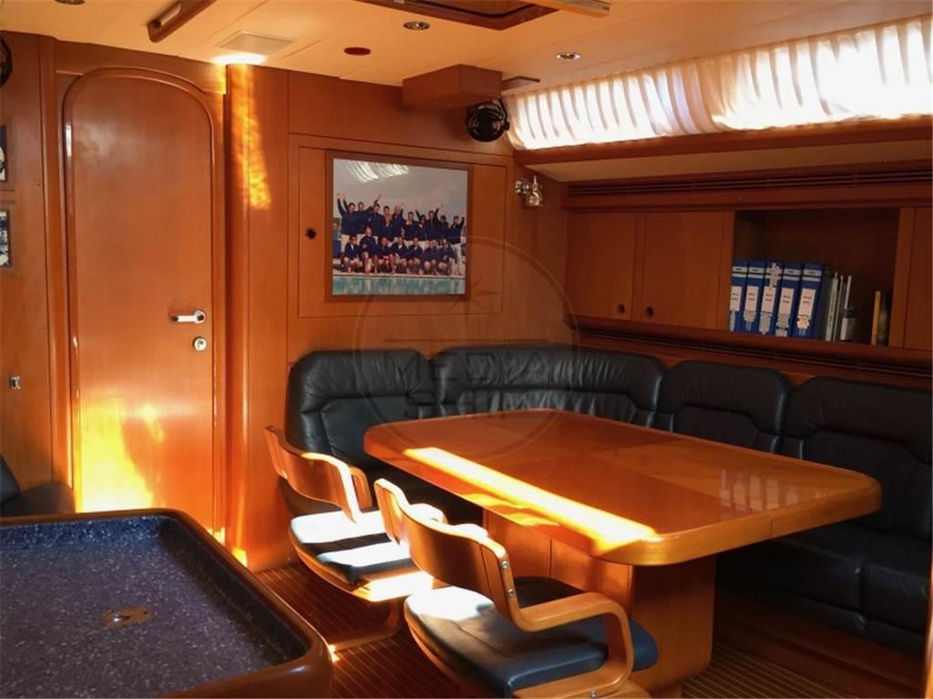 Notas internasNotas de la instrumentaciónBussola, Ecoscandaglio, GPS, Log, Pilota automatico, Radar, Radio VHF, Stazione vento.Notas de armamentoAllestimento tecnico e di coperta:Ancora, Impianto antincendio, Passerella, Pompa di sentina elettrica, Scaletta da bagno, Winch Elettrico (Electric). Dotazioni domestiche di bordo: Riscaldamento. Cucina ed elettrodomestici: Congelatore, Fornello (Gas), Forno, Frigorifero interno (Electric). Tappezzerie: Cappottina, Copriscafo. Vele: Randa, Spinnaker, Fiocco, Genoa, Avvolgi Fiocco. |