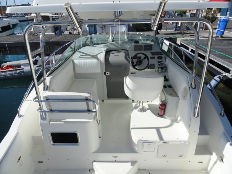 Notas internasNotas de la instrumentaciónGPS Geonav 6 sunshine, Eagle, Eco, Cobra Vhf Radio cd Clarion, alerones, puños, cargador de baterÃa electrónica acoplar, Molinete eléctrico, 2 salpabollentino adoptada, caldera de agua caliente, control de motores de smartcraft, lcd Tv, bomba de agua de marNotas de armamentoTecho de acero con cobertura total, completo exterior, tinas de cucineria, 2 hundir en la cabina, livewell, planta de agua de toldo negro, cierre total, 2 baterÃas nuevas 2012 |