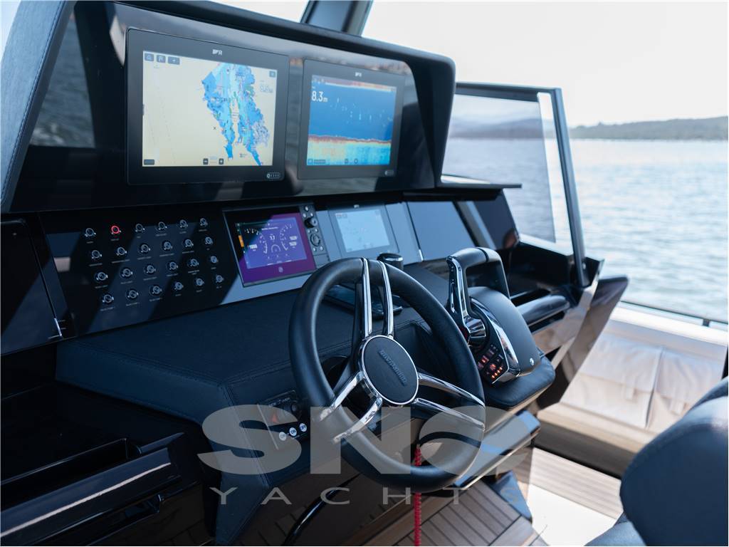 L’ambiente interno è costituito da una dinette trasformabile in letto matrimoniale e da un bagno separato, spazioso e dotato di tutti i comfort. La dominante zona comandi accessoriata di tutti gli strumenti di navigazione permette di sfruttare questo mezzo ai meno esperti, consentendo un utilizzo affidabile sia per la navigazione e l’uso sotto costa che per le lunghe tratte.