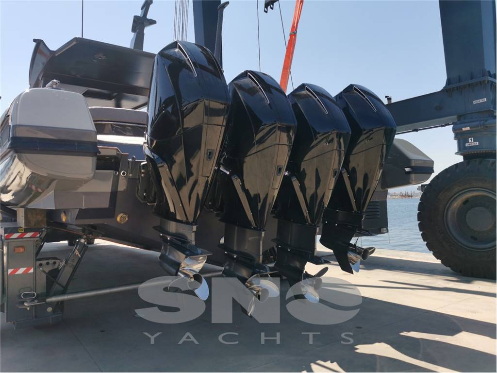 Notas internasModello / Model BS160 FB Anno di costruzione / Year build 2021 Anno di immatricolazione / Registration year 2021 Categoria / Category Usato / Used Tipo di imbarcazione / Type of boat GRP Pleasure Vessel Omologazione / Certification B Bandiera / Flag Malta Lunghezza / Length 16,7 m Larghezza / Beam 4,36 m Pescaggio / Draft 0,8 m Dislocamento / Displacement 12,6 t Portata massima persone / Max people 25 Cabine totali / Cabins 1 Posti letto / Berths 1 Bagni / Heads 1 Visibile / Lying SNO Yachts Motori / Engines 4 x Mercury Racing R450 SM Potenza motori / Engines power 450 HP Potenza totale motori / Total engines power 1800 Anno motori / Engines year 2021 Tipo di motorizzazione / Engine type Fuoribordo / Outboard Consumo di carburante / Fuel consumption 147,80 h caduno / each Velocità Massima / Max speed 50 Velocità di crociera / Cruise speed 35 Autonomia / Range 300 nm Carburante / Fuel Benzina / Gasoline Serbatoio carburante / Fuel tank 2680 lt. Materiale serbatoio carburante / Fuel tank material Accaio Inox / Stainless steel AISI 316 Serbatoio acqua dolce / Water tank 200 lt. Materiale serbatoio acqua dolce / Water tank material Accaio Inox / Stainless steel AISI 316 Serbatoio acque nere / Sewage tank 45 lt Materiale serbatoio acque nere / Sewage tank material Plastica / plastic Doppio scarico / Dual exhaust ? Filtri benzina / Fuel filters ? Cabina armatore / Master cabin Letti matrimoniali / King size beds ? Bagno in cabina / Cabin head ? Specchio nel bagno / Head mirror ? Bagni con doccia / Heads with shower ? Wc con sistema marino elettrico / Electric marine system wc ? Coperture / Covers T-top Full-Carbon Tenda sole prua / Bow awning ? Tenda sole pozzetto / Cockpit awning ? Telo copri consolle / Console cover ? Telo copri sedile / Seat cover ? Telo pozzetto / Cockpit cover ? Notas de la instrumentaciónStrumentazione / InstrumentationMarca elettronica / Brand of instruments Raymarine VHF con DSC / VHF with DSC Ray 90 Monitor multifunzione / Multifunction display 2, 12", RAYMARINE, AXIOM Ecoscandaglio / Echo sounder RAYMARINE, P79 Trasduttore / Transducer Raymarine, P79, interno Bussola / Compass Magnetic Compass Autopilota / Autopilot Vessel View 703 Radar Raymarine Magnum, T70412 Doppia timoneria / Double helm station Gussi Joystick Mercury OB Doppio pistone timoneria / Double piston gear ? Notas de armamentoIntrattenimento / EntertainmentImpianto audio / Audio system JL MARINE, PREMIUM LED Altoparlanti interni / Internal loudspeakers 2, in cabin, JL Audio, M6-650X-S-GmTi Altoparlanti esterni / External loudspeakers 4, on T-Top and at bow, JL Audio, M6-650X-S-GmTi e M6-770X-S-GmTi, M6-770X-S-GmTi e M6-650X-S-GmTi Altoparlanti pozzetto / Cockpit loudspeakers 2, 1 at bow and 1 under cockpit area,JL Audio, M6-10IB-S-GmTi-4 Interni / Interiors Interni / Interiors Grigio, Nero, Bianco / Grey, Black, White Tavolo da pranzo / Dining table Bow Divani interni / Internal sofas 1 U shaped couch Dinette trasformabile / Convertible dinette ? Aria condizionata / Air conditioning Frigomar 16000 BTU nella cabina,/ in the cabin Oblò apribili / Opening porthole ? Scala interna per flybridge / Internal staircase to fly bridge n/a Cassaforte / Safe n/a Esterni / Exteriors Parabrezza abbattibile / Folding windscreen ? Poggiapiedi timoneria / Helm station footrests ? Asta portabandiera / Flag pole Maxi Prendisole di prua / Bow sunbed ? Prendisole di poppa / Stern sunbed ? Tavolo prua / Bow table Convertibile Tavolo prendisole di prua / Bow table-sunbed Convertibile Scala da bagno / Swimming ladder ? Scala da bagno a poppa / Stern swimming ladder ? Scala da bagno laterale / Side swimming ladder ? Telecomando passerella / Gangboard remote control ? Porta laterale con scala da bagno / Side door with ladder 2 Porta stagna blindata / Watertight armoured door Presenza, marca, modello Faro direzionale / Swivelling searchlight Presenza, marca, modello |