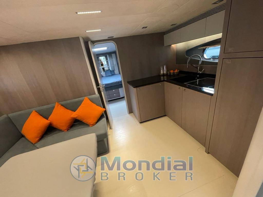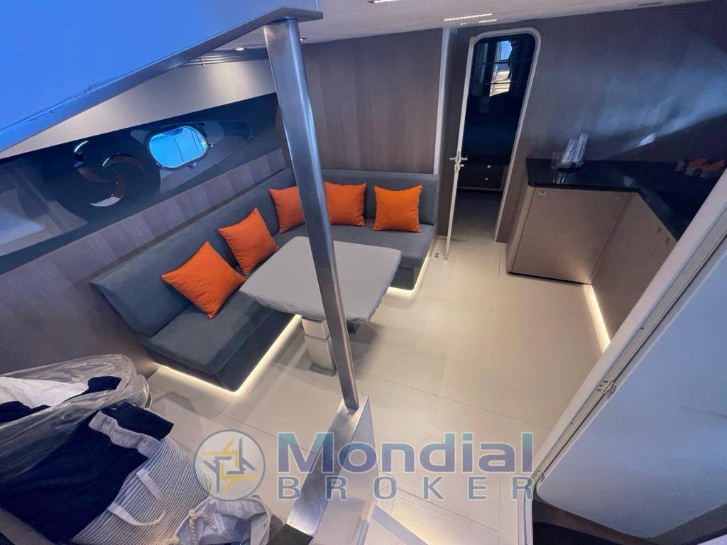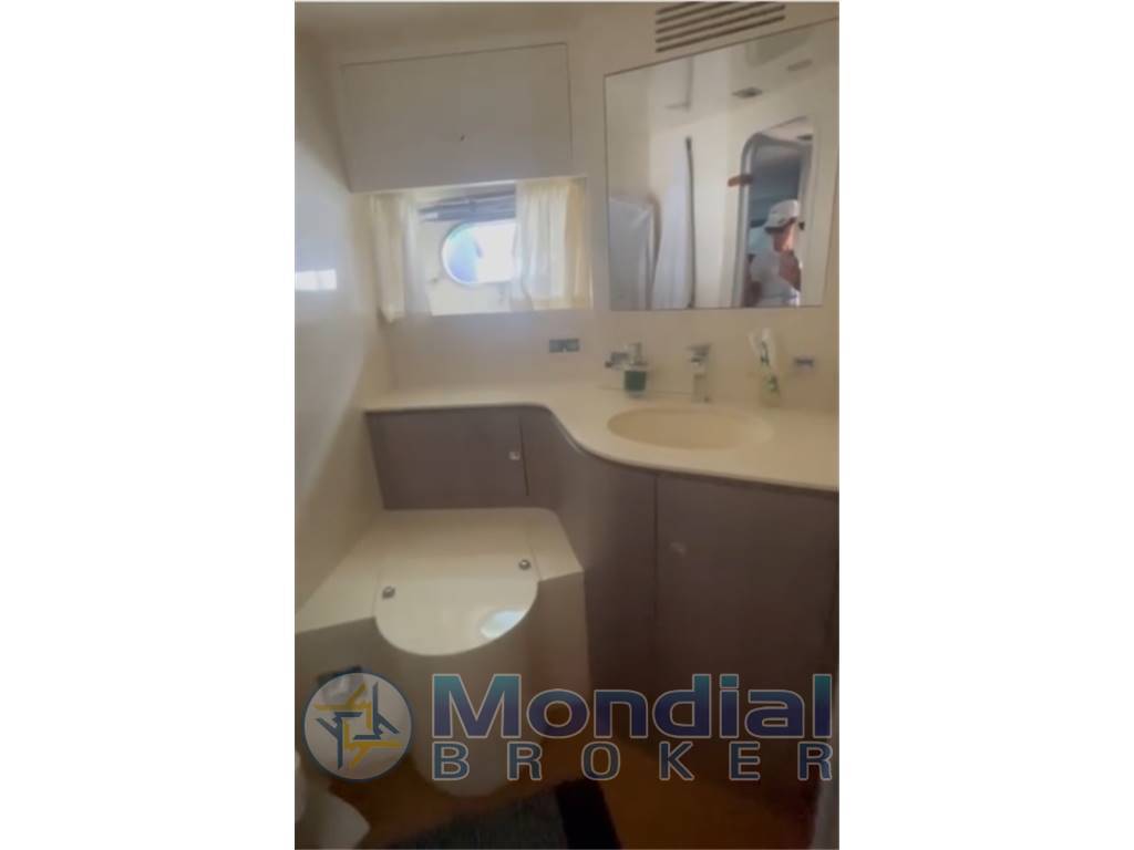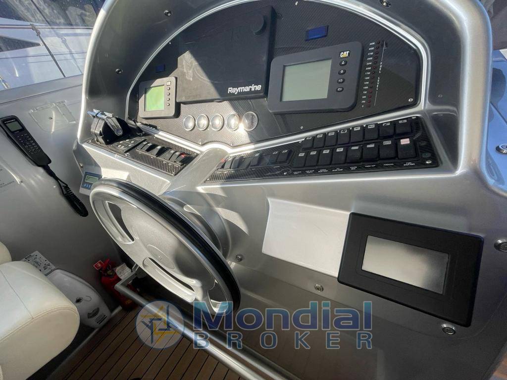 Notas internasAria condizionata – Vhf Furuno – Gps – Ecosounder – Log – Generatore Kohler 8 kw – Bowthruster – Pozzetto in teak -Passerella idraulica – Tv satellitare – Tv con sistema pop up in dinette – Tetto apribile idraulico – Sedile pilota elettrico – Sistema Bose in tutte le cabine – Tender Zodiac