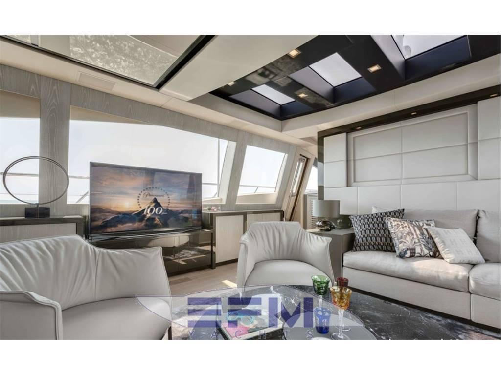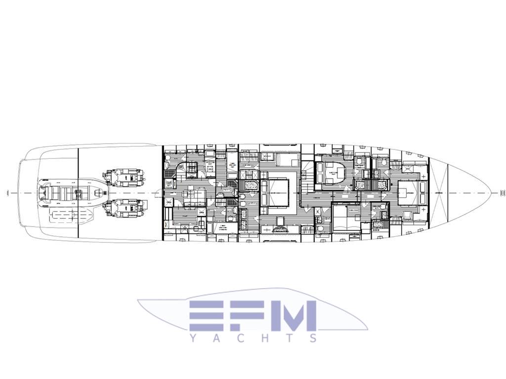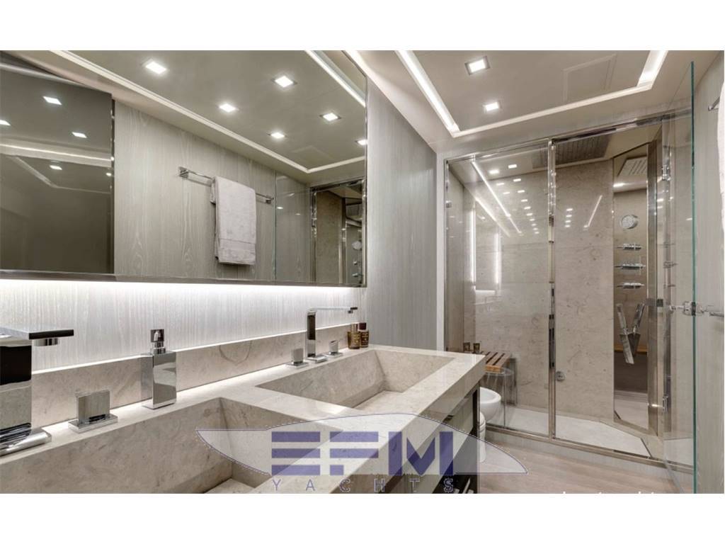 Notas internasCabin 4 + 2 crew Head compartments 4+1 crew 1 Master cabin ensuite full bean middle yacht 3 Vip cabins ensuite Notas de la instrumentaciónPosto di controllo principale:• 2 x Hatteland 24 "Touchscreen HD • 2 x Hatteland 19 "Touchscreen HD • Mappatura del platino Navionics • Radar Simrad TX06S-01 • Ecoscandaglio Simard Structure Scan • Autorad Simrad AP70 • Telecomando portatile per autopilota • Sensore di direzione del vento e forza • Sistema AIS • Radio VHF • Walkie-talkie con ricevitore AIS SIMRAD RS90 integrato • Wireless VHFHS35 • Sistema Navtex FURUNO Postazione di controllo Flybridge: • 2 monitor Boening M15-L • Controller del monitor master • Wireless VHFHS35 • Telecomando portatile per autopilota • Interfono Phono tech CIS 3100 Notas de armamento•Thoroughly surveyed by credited AZURE Naval Architect when delivered by Overmarine shipyard in March of 2017 to its current owner•She is equipped with 2xMTU 2000 M94 (2600 HP each) combined with Kamewa Waterjet (no vibration or noise comparing to a standard shaft or surface drive) for a top speed in full comfort over 34 and cruising at 32 Knts even perfect for the shallow water of the Bahamas considering the low draft •All warranty items have been addressed prior to vessel warranty expiration (August 2018) •Fit and finish on this vessel is of highest quality and materials compared to any other 110 Mangusta •Special Custom marble counter tops called “Crema Luna” similar to Travertine Stone combined with lacquered wood and stainless steel profiles throughout Christofle silverware and dishware specially developed for this vessel with custom storage drawers •Special custom backlighted marble wall in the saloon •A/V system with full iPads control to TV, Music, lights, A/C, lights, etc. •Only M110 with Fly bridge custom furniture with special storage compartments •BBQ on the fly and exterior refrigerators/ice-maker •Custom exterior tables are pop/up tables and are equipped with extension to be put on top •Big Aft deck Jacuzzi factory installed •External TV in the cockpit •Large Jacuzzi on the aft deck •High end Hi-Fi spec with satellite TV and iPad controls everywhere •High end Avionics spec with FLIR system •Castoldi jettender 455, Seadoo SEADOO 260 RPX jetski and 2 seabobs barely used •4 cabin layout with spacious open salon •Low engine hours (785 to be exact) •MTU engine extended warranty until April 26th, 2019 •Engine and generator service recently completed •Recent bottom and jet drive anti fouling •$250,000 worth of options and spare equipment •Worldwide power converter •Seakeeper gyroscopic system model 26 working at zero speed and underway •4 full time crew maintained no expense spared •Interior rarely used, owner has slept on board only a few times •Replacement value for a fully loaded M110 is more than €12M •Only M110 built specially for the American market •Bureau Veritas Certified as of October 2018 •Cayman Island Flag •The class notation is: Yachts NR500, Maltese Cross, HULL / MACH, Yacht / Motor / C, Unrestricted navigation •Private, never offered for charter |