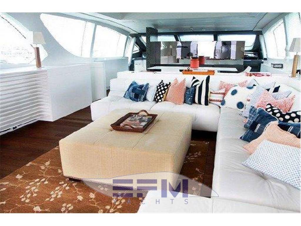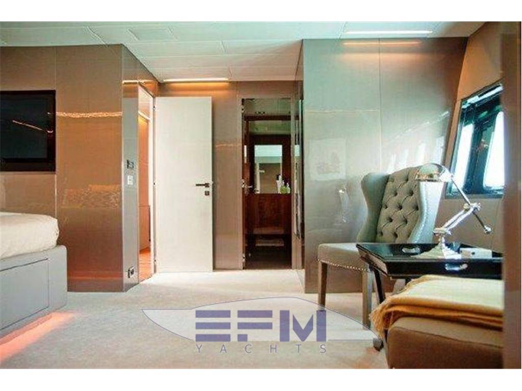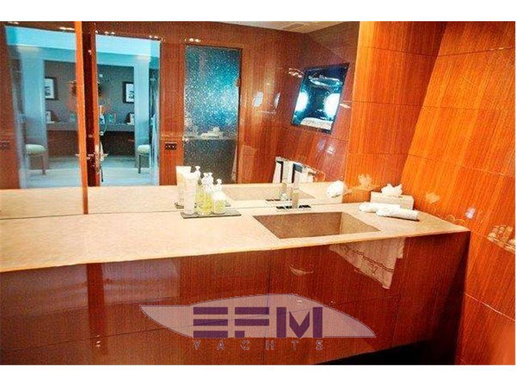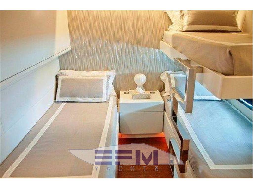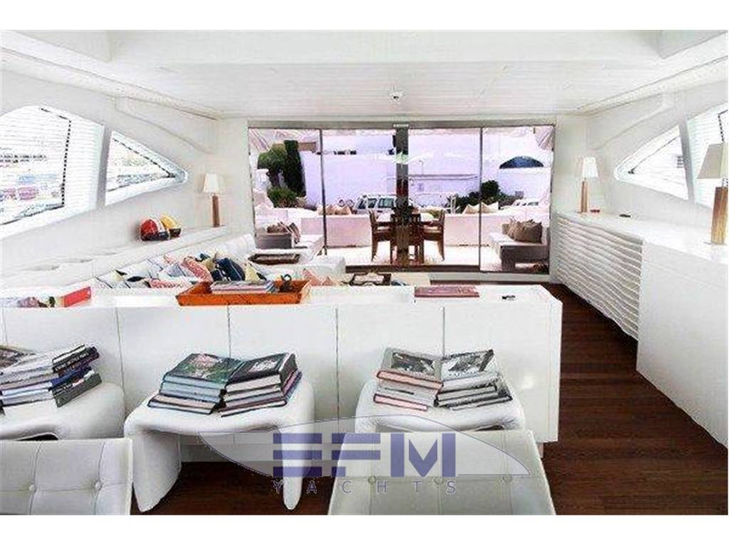 Notas internasNumber of guest cabins: 4 Number of guest heads: 4 Number of crew cabins: 3 Number of crew heads: 3 This truly one-of-a-kind luxury yacht features numerous spaces, an enormous saloon and dining area in the upper deck, with a front pilot station. A media room equipped with the latest technology audio/video equipment is located on the lower deck, together with accommodation which can host up to 9 guests in luxurious cabins – master astern, front VIP and two double cabins, one of which has a third Pullman bed. Notas de la instrumentaciónElectronics? Repeater(s) ? VHF ? CD player ? Log-speedometer ? Navigation center ? Radar ? Cockpit speakers ? Compass ? GPS ? Radio ? DVD player ? Depthsounder ? Plotter ? Autopilot ? Wind speed and direction Notas de armamentoInside Equipment? Refrigerator ? Washing machine ? Fresh water maker ? Hot water ? Bow thruster ? Air conditioning ? Heating ? Oven ? Electric bilge pump ? Dishwasher ? Stern thruster ? Microwave oven ? Battery charger Electrical Equipment ? Shore power inlet ? Generator ? Inverter Outside Equipment/Extras ? Cockpit cushions ? Liferaft ? Teak cockpit ? Cockpit table ? Swimming ladder ? Cockpit shower ? Tender ? Teak sidedecks ? Hydraulic gangway Covers ? Bimini Top ? Cockpit cover |