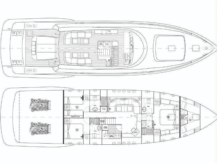 • BARCO SECA, EXCELENTE ESTADO DE MANTENIMIENTO. TRES CABAÑAS CADA UNA CON SUS SERVICIOS, EQUIPO LOCAL INDEPENDIENTE AL ARCO CON SERVICIOS. ELECTRÓNICA COMPLETA, ACCESORIZADA CON ARCO Y STERN, LA POPA ESPEJO LUCES SUBACUÃTICAS. HANGAR, RETRÃCTIL HIDRAULICA, AIRE ACONDICIONADO EN TODAS LAS HABITACIONES, TV VÃA SATÉLITE, LLENO DE TECA. |
