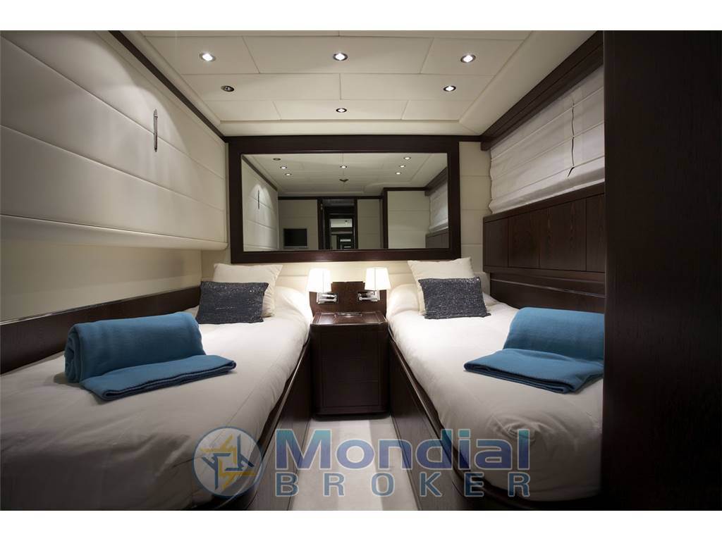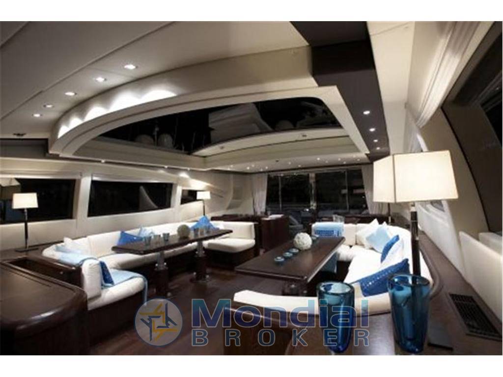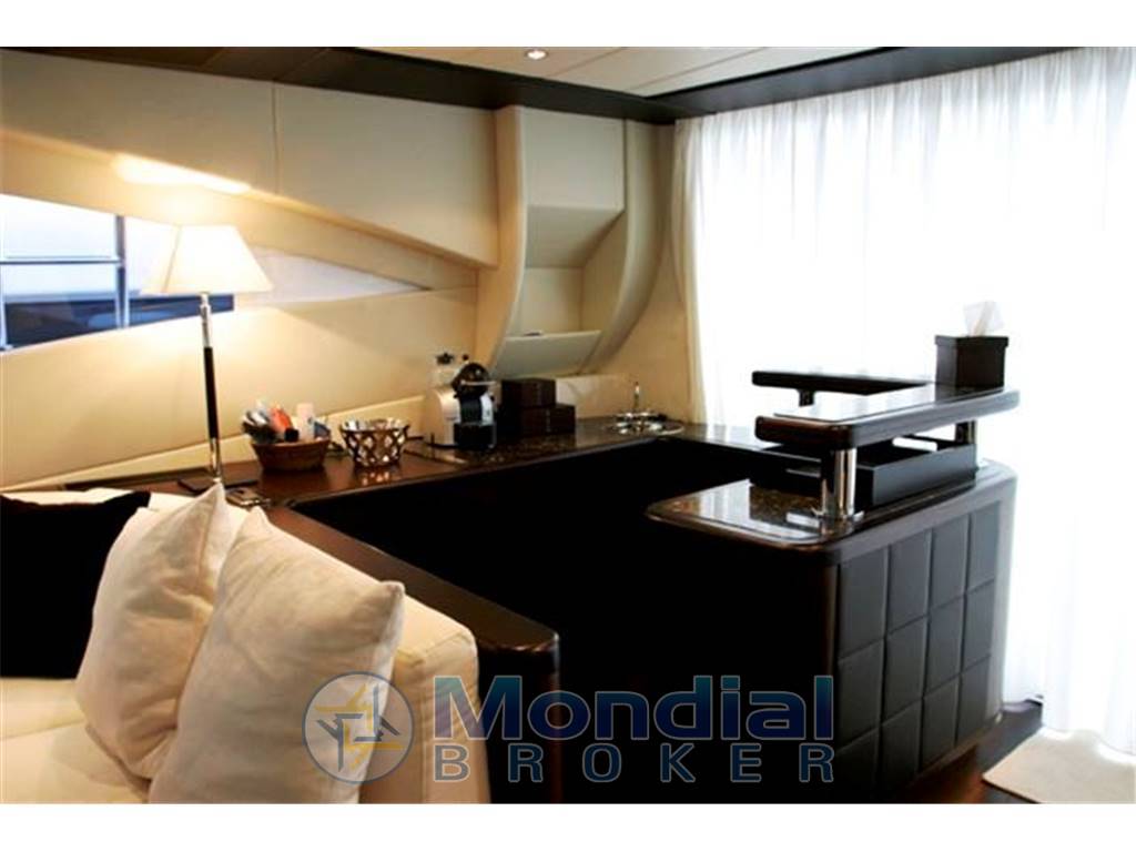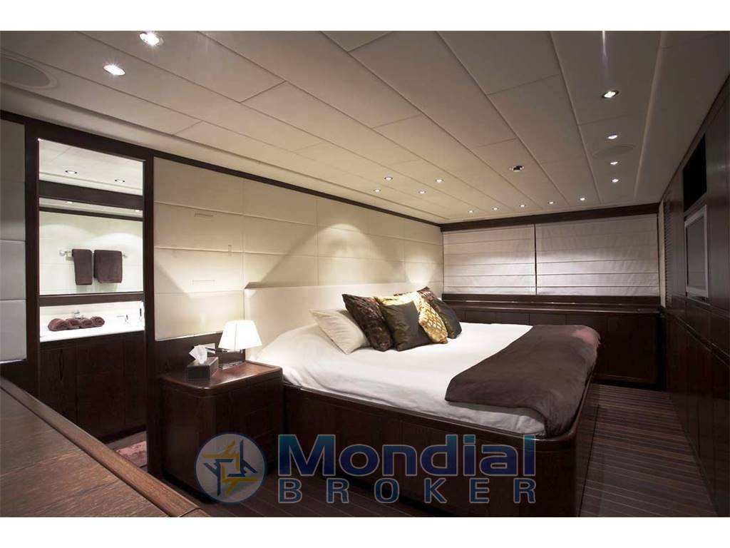 Notas internasNumber of double berths: 2 Number of cabins: 3 Number of heads: 3 Number of bathrooms: 3 The Mangusta 92 can accommodate up to 6 guests in 3 cabins on the lower deck accessed via a wooden staircase. There is a convenient day head in the passage way comes with a WC, a marble-topped washbasin and a shower cubicle. The Master cabin is located amidship, and is full width of the beam with plenty of natural light thanks to the 10 panoramic portholes. The large walk-in wardrobe (3.5 m2) at the entrance provides plenty of storage. This cabin also boasts a huge king sized bed measuring 2.5 x 2.1m. The master cabin full beam bathroom has a twin white marble-topped washbasin, a WC and an ample shower cubicle with seat (3sq. m.). There is an excellent sound insulation because the crew quarters and the bathroom are located between the engine room and the Master cabin. The VIP Cabin is located forward, and comprises of a comfortable queen size bed (2 x 1.8m) a sofa for two people and a bathroom with a shower cubicle, a marble-topped washbasin and a WC. There is also a comfortable twin cabin with two beds (0.8 x 2m each) and an additional pullman berth (0.7 x 1.8m). The bathroom is fitted with a marble-topped washbasin, a WC and a shower cubicle. Notas de la instrumentaciónAutopilotRadio Radar Detector TV set VHF Computer DVD player Log-speedometer Radar GPS Cockpit speakers CD player Compass Depthsounder Entertainment equipment Wide screen plasma TV- DVD- Satellite TV Surround sound system on aft deck Outside Equipment / Extras Cockpit shower Teak sidedecks Liferaft Radar reflector Cockpit cushions Teak cockpit Cockpit table Tender Swimming ladder Hydraulic gangway Electric windlass Notas de armamentoAir conditioningOven Microwave oven Hot water Refrigerator Electric bilge pump Battery charger Sea water pump Air compressor 2 X Fresh water maker Deep freezer Electric head Bow thruster Washing machine Heating Dishwasher Electrical equipment Kholer 2x27kw Shore power inlet |