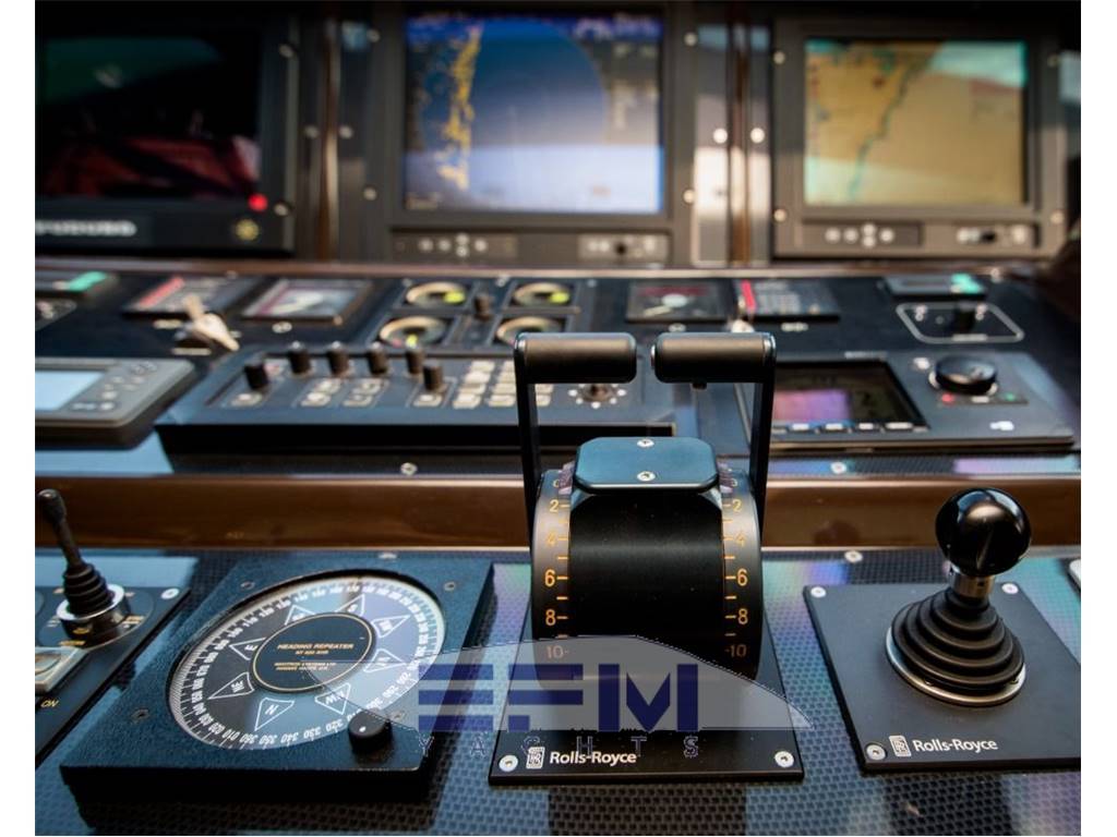 Maintenances refit works 2020/2021 Vessel is hosed down every day, full wash down every week and fully waxed every month Pin stripe, starboard and port shell doors, nose (starboard) resprayed. Swim platform teak recaulked and sanded Main salon interior wrapped by Wild Group New 5G router New Yamaha amplifier + new exterior speakers New AIS installed Helm position seats waxed and oiled New Smart TV in main salon Replaced the starboard side crew cabin toilet All sewer pumps and plumbing aft has been decalcified A/C unit in port crew cabin replaced New lamp shades in main salon Engine room bilge valves rebuilt Watermaker filters replaced New fuel pump, solenoid, and heat exchanger on starboard generator have been replaced. All batteries were replaced Rolls Royce waterjet recalibration Hamann sewage treatment motor rebuilt Main engine service Gangway motor replaced Exterior cushions replaced New exterior dining table Gearbox oil sample analysis New awning New Anti-fouling and anodes |