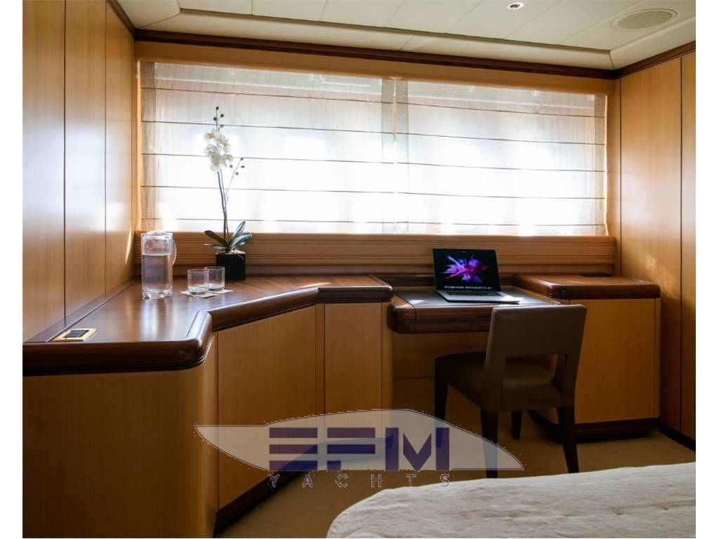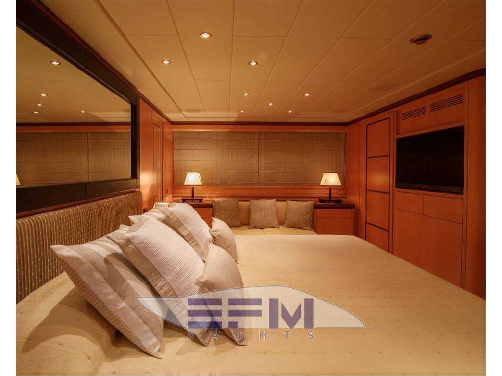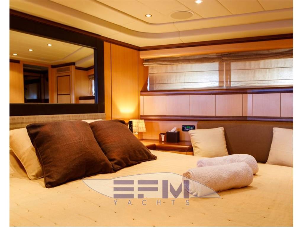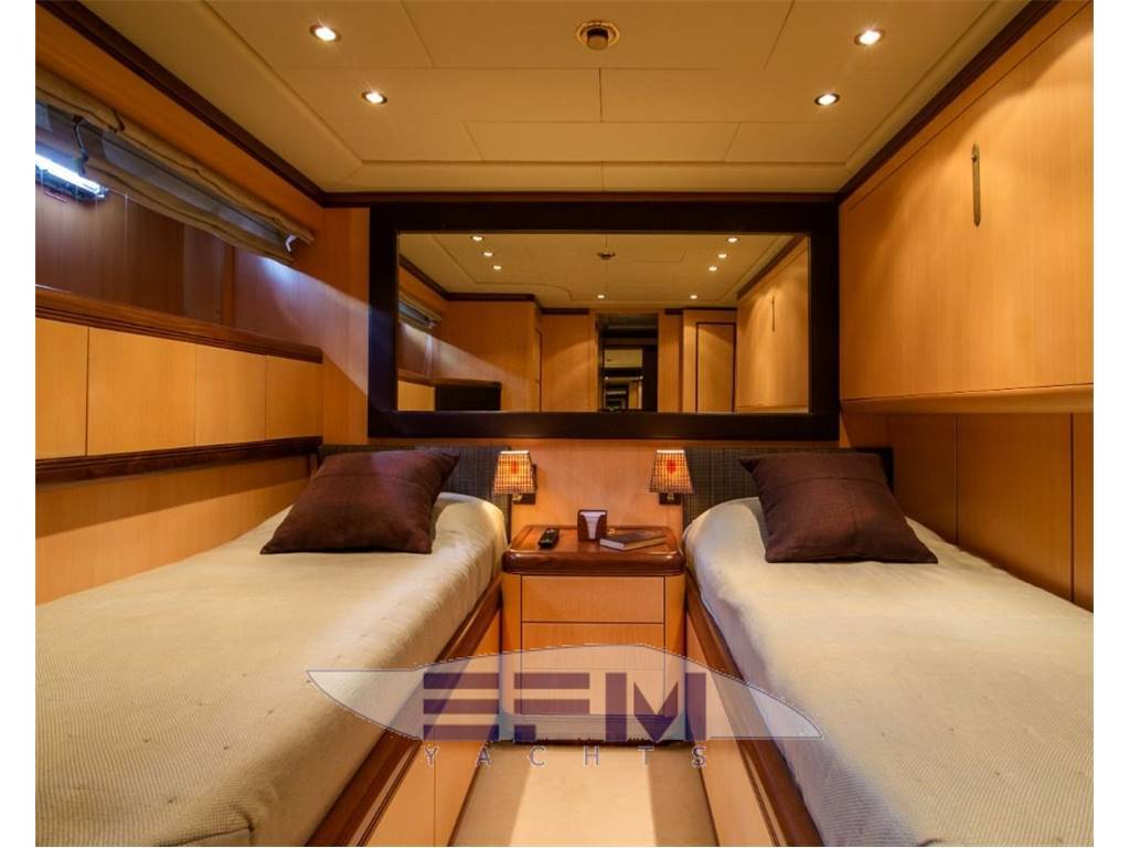 Notas internasShe comprises a master suite, 1 double cabin and 2 twin cabins. The aft deck has a large sunpad and dining table, whilst inside the main saloon is a bar, serving area and built-in seating. OWNER : Master cabin is located amidships, full beam with king size bed, ensuite bathroom with shower and walk-in wardrobe.. GUESTS: One cabin with queen size beds and ensuite bathrooms. Two twin cabins with Pullman bed and ensuite bathroom CREW: Accommodation for up to 4 crew in 2 cabins with ensuite bathrooms In 2020/21, SHE benefitted from brand new decoration from upholstery, interior wrap and teak refurbishment, to crockery, cushions and towels. This is a well-loved yacht, with dedicated ownership and maintenance schedule. With four generously-sized and versatile guest cabins, SHE can accommodate up to 10 guests onboard overnight. Her master cabin offers a welcoming impression finished in light decor and with ensuite facilities. A sumptuous VIP cabin provides ample space for guests and includes ensuite bathroom facilities. Fresh and contemporary in feel, SHE includes two twin cabins. Each room has ensuite bathroom facilities and benefits from a Pullman bed for additional guests. The main living space is both elegant and comfortable. Designed for onboard socialising, the open-plan layout of the main salon enhances SHE's feeling of spaciousness. Divided into a lounge and dining area, almond-hue decor and elegantly curved benches offer a relaxed, cosy and child-friendly lounge space. Recently refitted in 2020 with brand new aft dining and custom aft deck awning, she is ideally set up for relaxing and entertaining outdoors. Fitted with an outdoor sound system, the alfresco lounge and dining spaces on deck are made that much more agreeable. With a strong, bold and sharp exterior design by Overmarine, Italy, SHE turns heads in every port. Notas de la instrumentaciónNavigation InstrumentsCHART PLOTTER Furuno Waas Navigator GPS Furuno Navigator + Maxsea RADAR SIMRAD AUTOPILOT Robertson AP9 MK3 VHF SIMRAD New 2021 with new MMS COMPASS Navitron AIS (new 2021) INTERNET 5G coastal sim card router (new 2021) Elettric & Idraulic Sistem GENERATORS 2 x 27 kW 220/50 Hz Kohler GENERATOR HOURS September 2021 Starboard: 5,722 (approx.) - Port: 5,234 (approx.) 12 BATTERY new 2021 24 VDC Electrical system with Mastervolt Chargers 220 AC with 2 shore line inlets. 24/220 Volts Inverter for Media system FUEL SEPARATOR SEPAR SWK 2000 SEWAGE TREATMENT Hamann Supermini WATER MAKERS Idromar MC55 220L/h (new filters 2021) WATER SOFTENER Yes FIRE/BILGE PUMP Gianneschi WC’S Tecma vacumm system AIR CONDITIONING Frigit BOW THRUSTER Hydraulic BOILERS 2 x 100 L Av Equipment Sea Tel satellite TV antenna Smart TVs in all cabins Samsung Smart TV in saloon Stereo Denon music system with different areas and iPad control Satellite Smart TV Internet WiFi5G Audio equipment with independent areas Notas de armamentoDeckANCHORS 2 x 79 Kg ANCHOR WINDLASS 2 x Lofrans PASSERELLE Sanguineti SWIM LADDER Besenzoni CRANE Sanguineti UNDERWATER LIGHTS Blue LED Aqualuma Mooring Lines and Fenders Huge set of covers, winter covers, summer covers, canvas, etc. Teak dining table in cockpit Exterior small cushions Sunbathing cushion on top of roof (New 2019) Bimini top for the aft cockpit Exterior chairs Shower in bathing platform Domestic Equipment MAIN GALLEY: Fully equipped galley with electric hub, Miele dishwasher machine, oven, wine cellar, etc… LAUNDRY: Two washing machines one of them with dryer option. Safety & Security Equipment All safety equipment to comply with MCA regulations 2 Life raft Fire Extinguisher in each Cabin Fire Extinguisher in kitchen Fire Extinguisher in Salon Full auto/manual FM200 Fire Extinguisher in engine room 14 x Life jakets Hand held VHF Set of Fire flares Set of medical kit CCTV system Tender Williams turbojet 325 2011 |