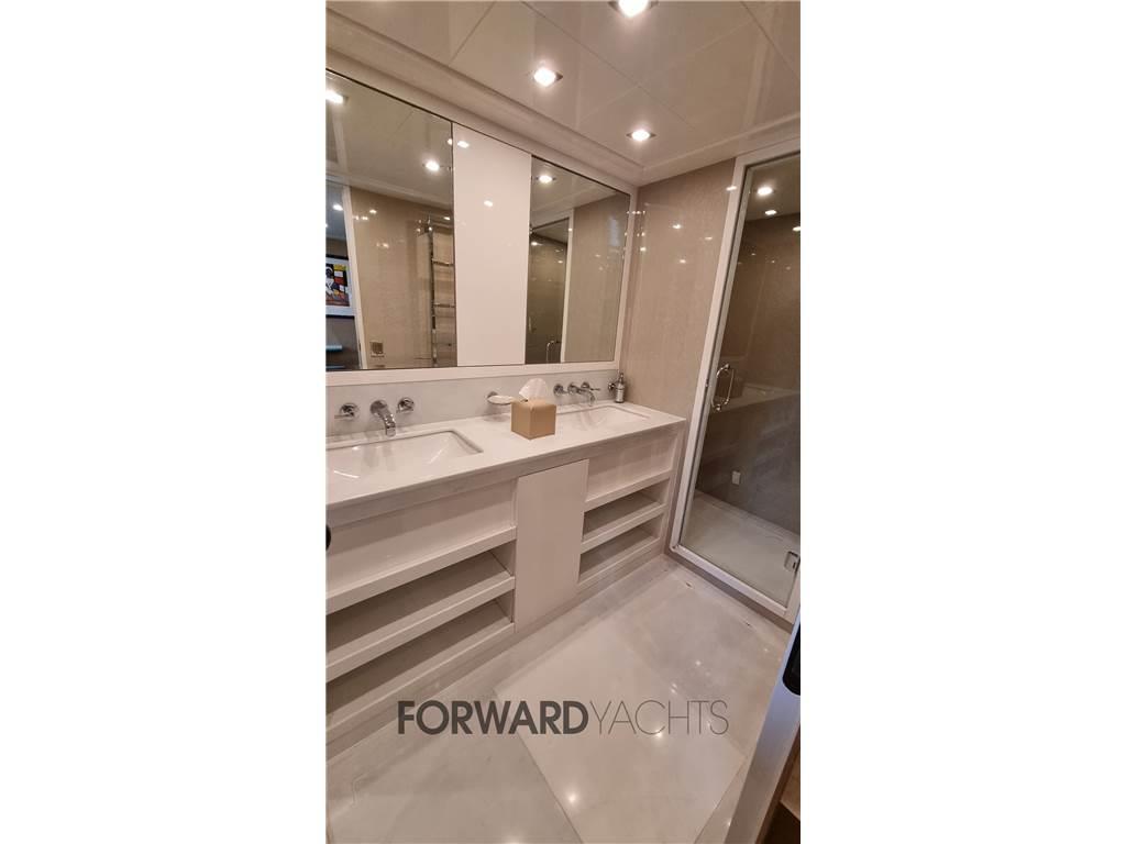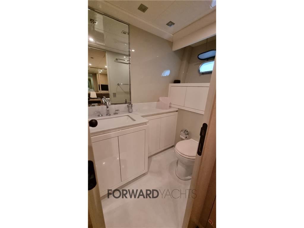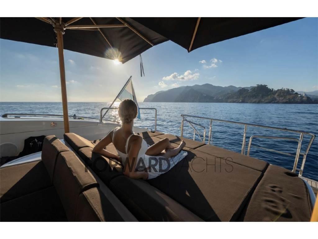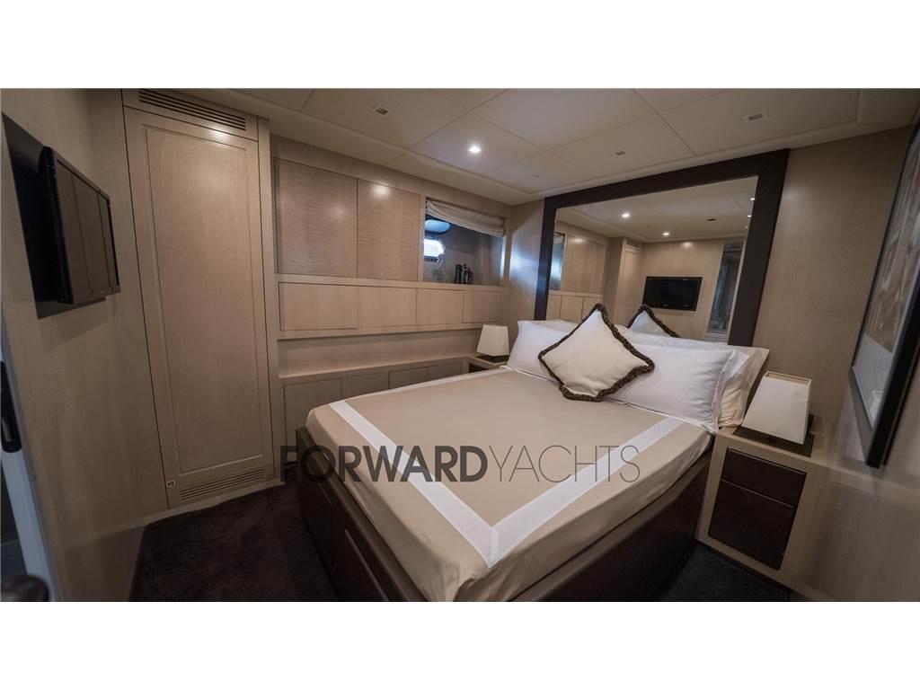 Notas internasUPPER DECK: Large living area with a decor based on a pleasant contrast between light wood and dark shades of leather and wengé flooring, 50’’ smart tv. The finishes are in oak, while walls and ceilings are covered with natural leather. A dining table faces a sofa served by a small table. Bar area with 2 Frigit refrigerators and icemaker. The wheelhouse, continuing towards the bow, provides a comfortable and spacious leather seat. LOWER DECK: The amidiships owner's double cabin is full-beam, a corner vanity on one side and a sofa on the opposite side, a walk-in closet and a large bathroom, 42’’ smart tv + cd/mp3 player. Continuing towards the bow we meet 2 guest cabins with en-suite bathrooms, one double and the other one twin, with smart tv + cd/mp3player. Forward VIP double cabin with en-suite bathroom, smart tv + cd/mp3 player. CREW QUARETER: Completely separate & indipendent: 2 twin cabins with relative bathrooms - Fully equipped galley with Miele oven & microwave, Frigit wine cellar, Miele hot plates x4, 2xFrigit professional refrigerators + freezer, Miele dishwasher & washer&dryer machine, TV Sony & security cam Notas de la instrumentaciónStrumentazioni:? VHF DSC Simrad Handset RS82 ? KVH satphone (disused service) ? PABX Telephone Exchange System 4 + 5 x cordless phones ? Panasonic Channel Cell Station Unit ? Simrad Radar & Black Box ? Radar scanner 4” + display ? Simrad GPS CX33 – Main Simrad Chart Plotter Display RA 83/93 ? Simrad Autopilot AP50 with Kamewa interface AD50, remote QS50 ? 3 Data Repeater Display ? Simrad Compass Interface ? Simrad Speed/Depht Transducer ? 3 x data repeater display Simrad ? pilothouse multi IS20 – galley IS20 – captain cabin IS20 ? MTU Blue Vision CPU - Wiper Control Speach ? Simrad Wind Amplifier - Wind Transducer ? 5 X Cordless phones – 1 x wireless keyboard. Notas de armamentoAccessori:- BCS Hydraulic bowthruster 25kw - KVH SAT System - electric searchlight Sanshine - Security camera in aft deck, engine room, helm, galley and captain quarters CCTV - n. 2x28kw Kohler generators 230/50Hz C FOZ - n. 2xMastervolt battery chargers 24/120 + inverters - Frigit reverse cycle air conditioning 230V AC - Idromar Watermaker MC3J vertical 250 L/H - Fresh water pump: Gianneschi ECOJET B 230V AC + 24V DC - Main engine fuel separator SEPAR - n. 2 x Lofrans Project 1.5kw/24V - 2 x Lofrans Project 2kw/24V vertical anchor windlasses - n.2 x105 kg galvanized anchors + 2x14mm chain lenght of 100mr galvanized - gangway / Tender hoist Sanguineti Pasman 92 max load 480kg - swimming ladder Sanguineti OV.92 - hot/cold deck shower - full emergency equipment – suntop, bow & cockpit sunbed - - Williams 385 jet tender |