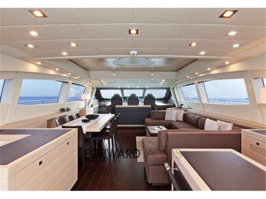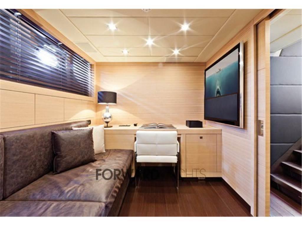Notas internas- Cabina armaotoriale matrimoniale a tutto baglio a centro barca; bagno privato completo; - Cabina VIP matrimoniale a prua con bagno privato completo; - Cabina ospiti a sinistra con letti singoli in piano e bagno ospiti completo; Notas de la instrumentaciónStrumentazione:- Tridata - GPS - Plotter - Radio VHF - Bussola - Pilota automatico - Ecoscandaglio - Stazione vento - Antenna satellitare - Comandi elica di prua - Comandi motori elettronici Notas de armamentoAccessori :- Pozzetto in teak - Passerella idraulica, - Elica di prua - Piattaforma di poppa - Garage per tender - Hard top elettrico - Tender Avon - Telecamere di video sorveglianza - Doccia esterna - Cuscineria completa - Winch elettrici di poppa |