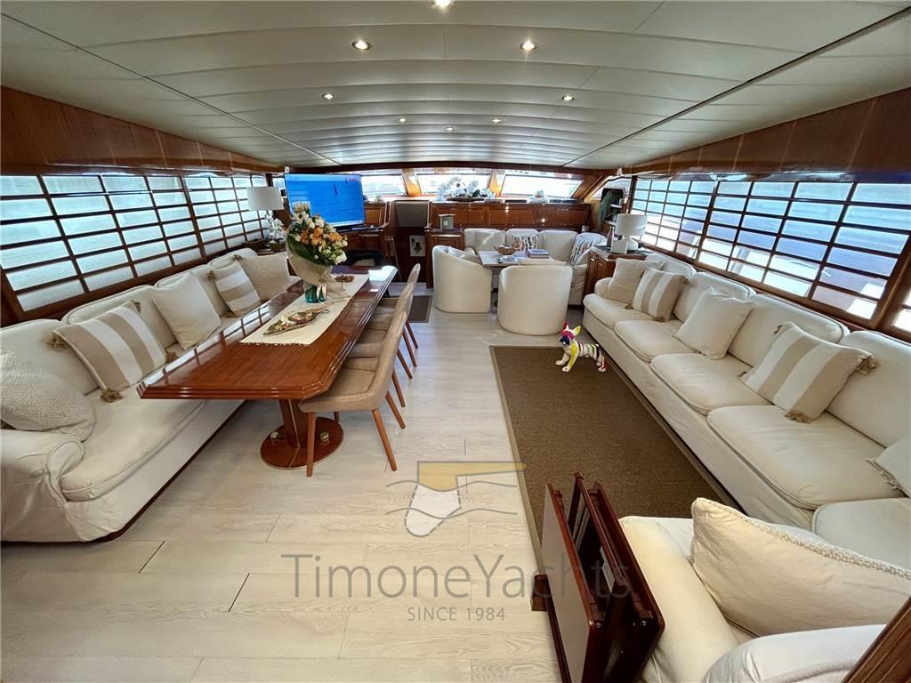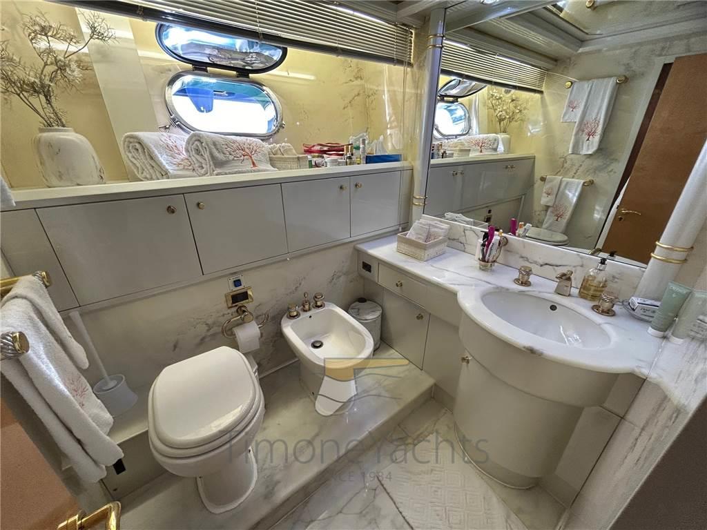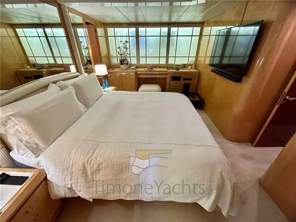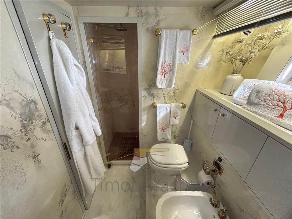 Notas internasSotto 4 cabine: Armatoriale a centro nave, vip a pria, ed in mezzo una doppia ed una singola con scrivania. Ogni camere ha bagno ensuite, con doccia e bidet. Splendida la zona equipaggio, da 4 posti letto in due cabine, ognuna con bagno. Nel comparto equipaggio si trova anche la cucina, enorme e molto molto attrezzata. Notas de la instrumentaciónComando motori elettronico, Contametri catena, Ecoscandaglio, GPS, Pilota automatico, Plotter, Radar, Sedile Copilota.Notas de armamentoAllestimento tecnico e di coperta:Camminamenti laterali in teak (flexiteak), Doccia esterna, Elica di prua - bow thruster, Faro orientabile, Flap elettrici, Garage per tender, Impianto antincendio, Indicatori Flaps, Lavaggio catena, Lavandino nel Pozzetto, Passerella, Pozzetto Teak, Presa 220V banchina, Presa acqua banchina, Tavolo pozzetto, Tender, Tromba, 2 Winch tonneggio di poppa, 2 Winch tonneggio di prua. Dotazioni domestiche di bordo: Aria condizionata, Cassaforte, Clima reversibile, Dimmer per Luci, Impianto acque nere, Pavimento interno in legno, Prese interne 12v, Prese interne 220v, Riscaldamento, Serbatoio Acque Nere, Telecamera, 4 WC marino elettrico (+ 2 crew). Intrattenimento: Altoparlanti, Antenna Satellitare TV, Digitale Terrestre, Impianto TV, Radio AM/FM, Stereo, TV. Cucina ed elettrodomestici: Congelatore (several freezer units all through the yacht), Forno, Frigorifero esterno, Frigorifero interno, Ghiacciaia, ICE Maker, 2 Lavasciuga (Miele Professional, 2 separate units), Lavastoviglie, Macchina caffè, Microonde, Piastra elettrica, Winecooler. Tappezzerie: Bimini, Cappottina, Cuscineria completa, Cuscineria di poppa, Cuscineria di prua, Cuscineria fly, Cuscineria Pozzetto, Telo copriconsolle, Tendalino. |