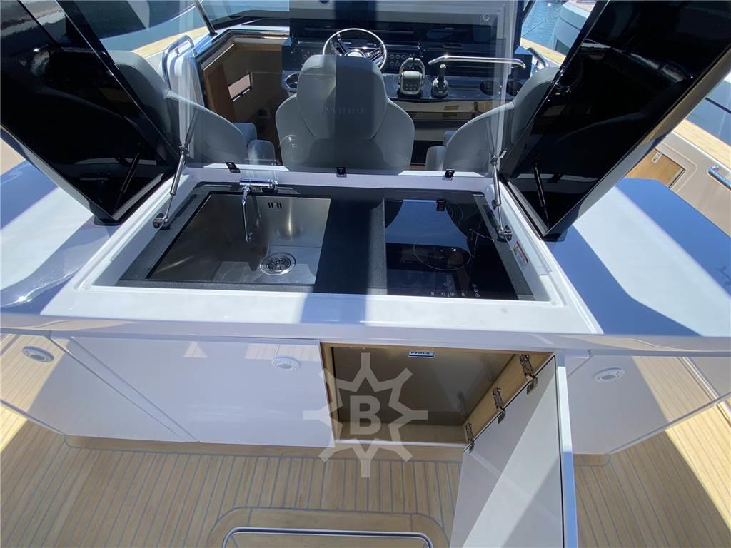 Notas internasNotas de la instrumentaciónAncora (electric system with camera on plotter.), Caricabatterie, Comando motori elettronico, Contametri catena, Doccia esterna, Ecoscandaglio, Garage per tender (electric), GPS, Joystick, Luci di cortesia, Piattaforma (Bigger size with up/down system in teak), Pilota automatico, Pozzetto Teak, Presa 220V banchina, Radio VHF, Scaletta da bagno, Tavolo pozzetto, T-Top (Carbon fiber black)Notas de armamentoAria condizionata, Boiler, Clima reversibile, Cuscineria completa, Cuscineria di poppa, Cuscineria di prua, Cuscineria Pozzetto, Frigorifero esterno, Piastra elettrica (induction 2 fire), Stereo (Entertainement Package FUSION), Telecamera (on anchor space), WC marino elettrico, Volvo Iterceptor system with, auto trim, single lever, cruise control, joystik drive, low speed mode. - Led lights on T-Top - Led Light in cockpit - Led lights on sides - sides steps retractable - 3 pilot seats in Silvertex, Second cabin with double bed. |