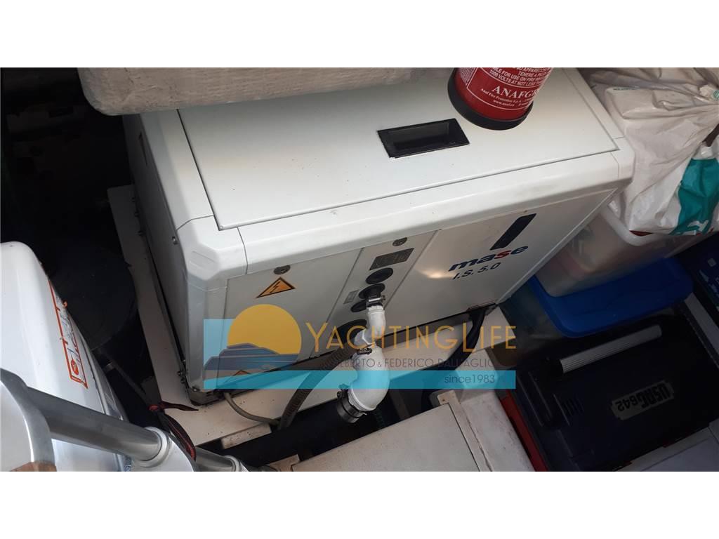 Notas internasNotas de la instrumentaciónAllarme motore, Allarme sentina, Ancora, Angolo barra, Autoclave, Autogonfiabile, Batterie, Bussola, Caricabatterie, Doccia esterna, Ecoscandaglio, Elica di prua - bow thruster, Flap elettrici, GPS, Indicatori Flaps, Luci di cortesia, Passerella (a scomparsa), Piattaforma, Pilota automatico, Pompa di sentina automatica, Pompa di sentina elettrica, Presa 220V banchina, Radio VHF, Rollbar, Salpa Ancore Elettrico, Scaletta da bagno, Tavolo pozzetto (elettrico), TrombaNotas de armamentoAltoparlanti, Aria condizionata (anche nel pozzetto), BBQ/ Grill, Boiler, Copripozzetto, 2 Cucina (interna ed esterna), Cuscineria completa, Digitale Terrestre, Frigorifero esterno, Frigorifero interno, Impianto TV, 2 Piastra in vetroceramica (a induzione), Prese interne 12v, Prese interne 220v, Riscaldamento, Stereo, Telo copriconsolle, Telo coprisedile, Tendalino, 2 TV (anche esterno fisso), WC marino elettrico, Zattera di salvataggio |
