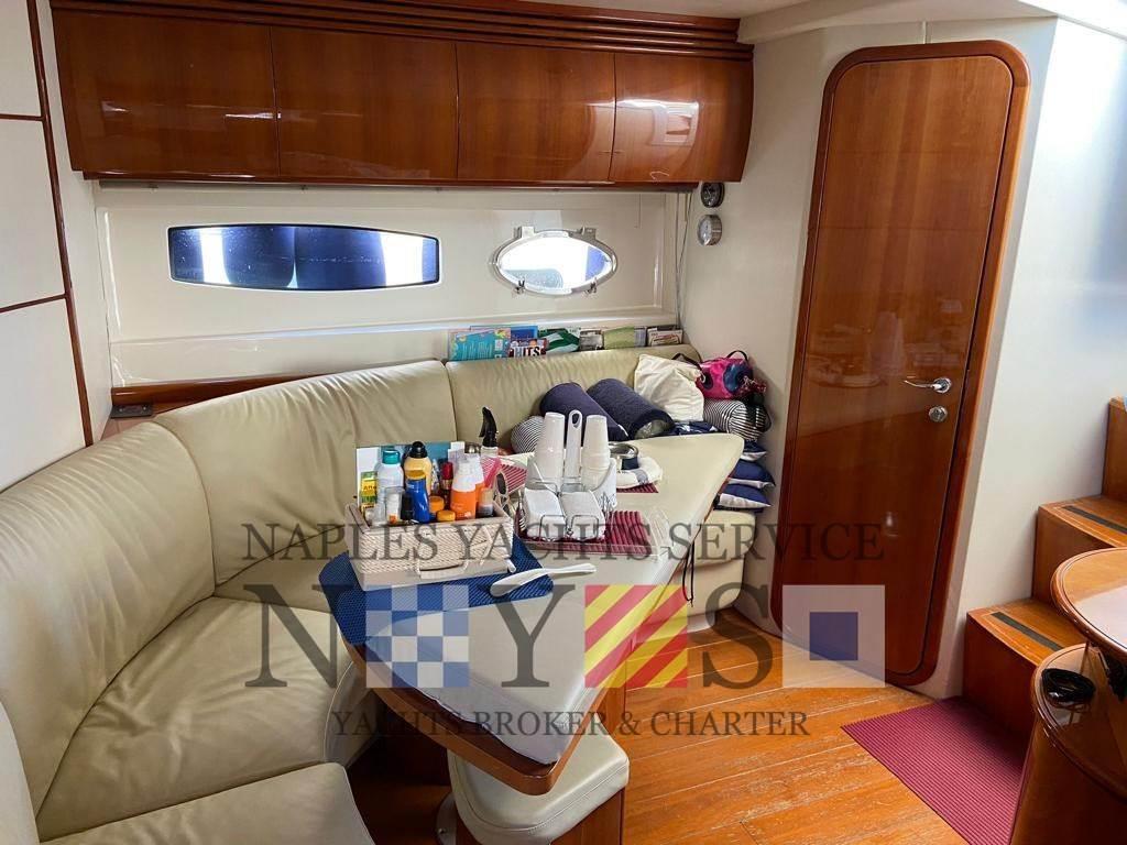 Notas internasCabina matrimoniale a prua con bagno Cabina ospiti con letto in piano Bagno ospiti verso prua Dinette con divano ad U Cucina attrezzata con piano cottura e lavabo Interni in ciliegio lucido Notas de la instrumentaciónStrumentazione elettronica di navigazioneComputer di bordo, 2 Display (MAN MULTIFUNTION), GPS (Raymarine ), Pilota automatico, Radio VHF Allestimento tecnico e di coperta Allarme motore, Allarme sentina, Ancora, Caricabatterie, Flap idraulici, Lavandino nel Pozzetto, Luci di cortesia, Passerella, Pompa di sentina automatica, Pompa di sentina elettrica, Pozzetto Teak, Presa 220V banchina, Raddrizzatore, Salpa Ancore Elettrico, Tavolo pozzetto, Tavolo Salone Abbattibile, Tientibene con cancelletti, Tromba Dotazioni domestiche di bordo Boiler, Prese interne 12v, Prese interne 220v, WC marino elettrico Intrattenimento Altoparlanti, Stereo Cucina ed elettrodomestici Cucina, Fornello, Frigorifero interno, Microonde Tappezzerie Cuscineria completa, Cuscineria di poppa, Cuscineria di prua, Cuscineria Pozzetto, Tendalino Notas de armamentoDISPOSIZIONE ESTERNARivestimento totale in teak con fuga nera Prendisole a poppa Dinette ad U con tavolo centrale Postazione di comando |