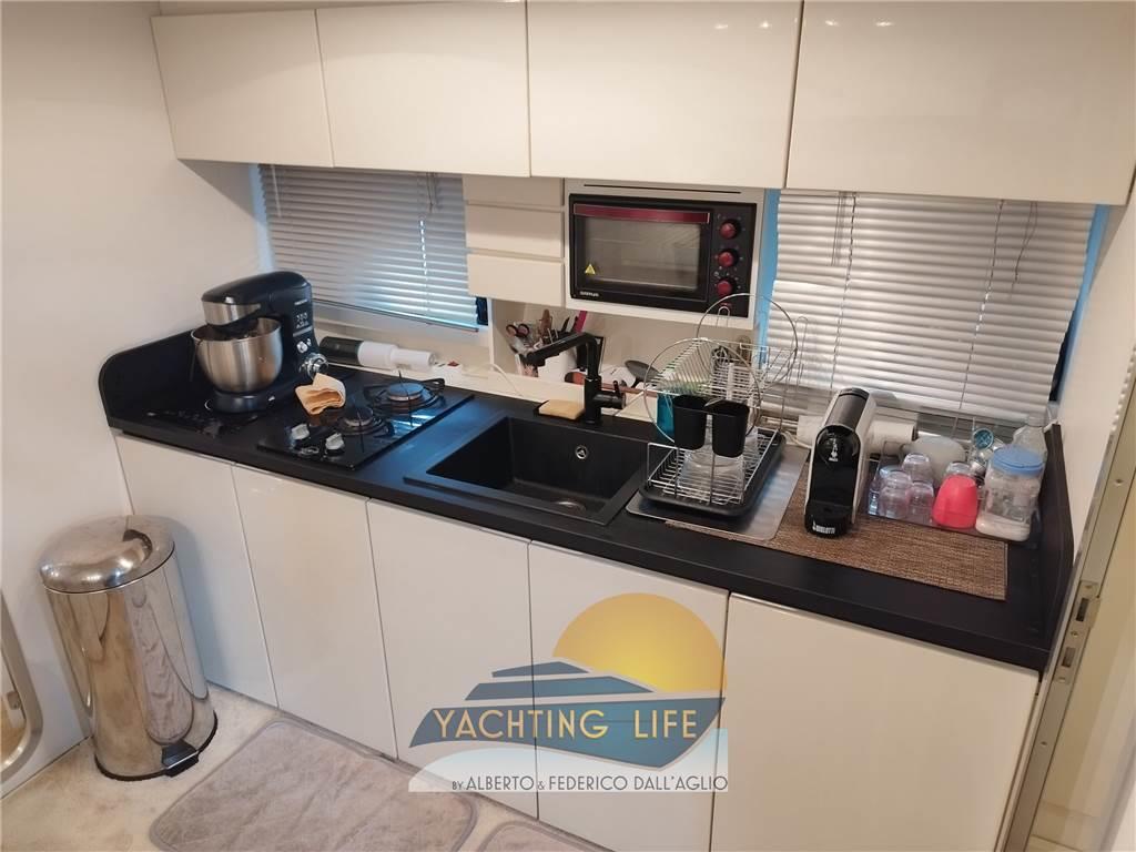 Notas internasNotas de la instrumentaciónAllarme motore, Ancora, Autoclave, Autogonfiabile, Batterie, Bussola, Caricabatterie, Colorazione speciale (Scafo bianco e blu), Doccia esterna, Ecoscandaglio, Elica di prua - bow thruster, Flap elettrici, Luci di cortesia, Luci subacquee, Passerella (Idraulica), Piattaforma (Allungata), Pilota automatico, Plotter con antenna GPS (Raymarine c-120), Pompa di sentina automatica, Pompa di sentina elettrica, Porta ingresso, Presa 220V banchina, Radio VHF (Nuovo), Salpa Ancore Elettrico (Motore 2022), Scaletta da bagno, Selle per Tender, TrombaNotas de armamentoAltoparlanti, Aria condizionata (Condaria), Boiler, Cappottina, Cucina (A gas), Cuscineria completa (Nuova), Digitale Terrestre, Frigorifero interno, Impianto TV, Inverter, Lavatrice, Microonde, Piastra in vetroceramica (Induzione), Prese interne 12v, Prese interne 220v, Stereo, 4 TV, 2 WC marino elettrico |