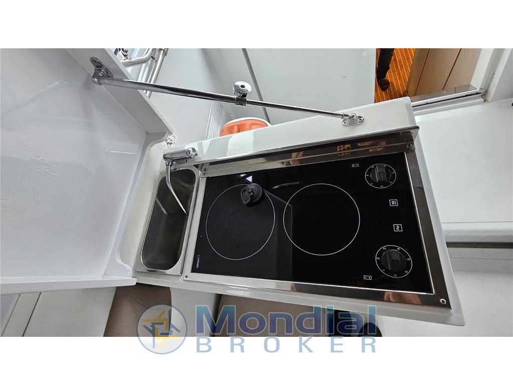Notas internasNotas de la instrumentaciónGPS/Plotter Geonav 11 - pilota automatico - ecoscandaglio - VHF.Notas de armamentoElica di prua elettrica - passerella elettro idraulica Besenzoni - antenna TV SAT Raymarine - TV LCD - tender con fuoribordo - gruppo elettrogeno EMI 3,5 kW - inverter - mobile bar in pozzetto con lavello e piano cottura elettrico due fuochi - piano cottura elettrico - forno combinato microonde - frigo e ghiacciaia Vitrifrigo in pozzetto - tavolo pozzetto idraulico - doccetta a poppa, pozzetto e prua - scaletta da bagno idraulica e manuale in acciaio. |