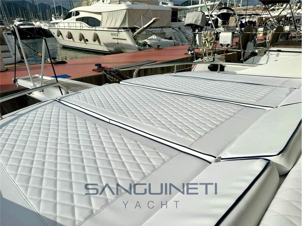 Notas de armamentoL’ imbarcazione dispone di cuscineria completa sia per gli interni che per gli esterni, offrendo un ambiente lussuoso e confortevole. Il tendalino solare e il tendalino camper garantiscono ombra e protezione durante le ore più calde della giornata, mentre il sistema di aria condizionata, caldo e freddo, rende piacevole la vita a bordo anche durante le stagioni più rigide o nelle giornate afose. Le dotazioni di sicurezza sono complete