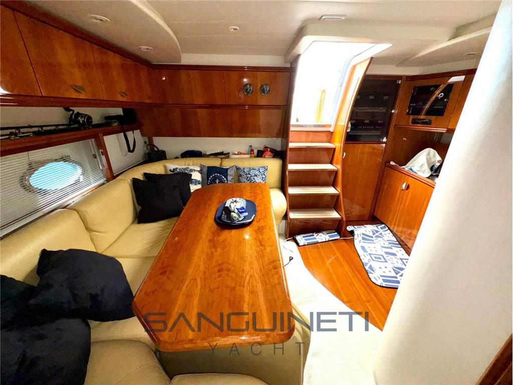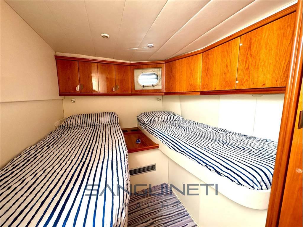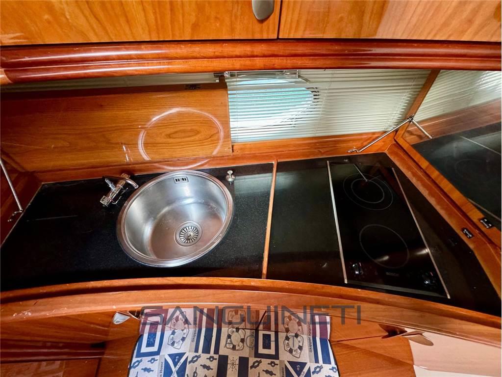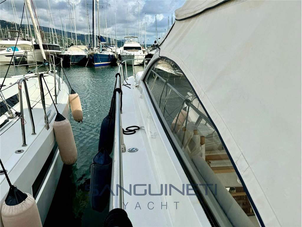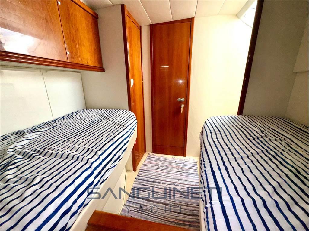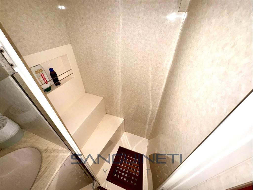Notas internasAll'interno, la disposizione degli spazi riflette un'attenta progettazione volta a massimizzare la vivibilità. A prua troviamo una spaziosa cabina armatoriale con letto matrimoniale, caratterizzata da finiture eleganti e materiali di alta qualità. Questa cabina offre un ambiente accogliente e ben illuminato, con accesso diretto a un bagno privato dotato di box doccia separato, offrendo tutto il comfort necessario per soggiorni prolungati. Al centro della barca, una dinette confortevole con divani invita al relax e alla convivialità, mentre la cucina completamente attrezzata, con forno, frigorifero e piano cottura, consente di preparare comodamente pasti a bordo. Nella zona poppiera, separata dal resto dell'imbarcazione, si trova una cabina per il marinaio, accessibile dal pozzetto esterno, con due letti singoli in piano e un ulteriore bagno con box doccia, offrendo così indipendenza e privacy.