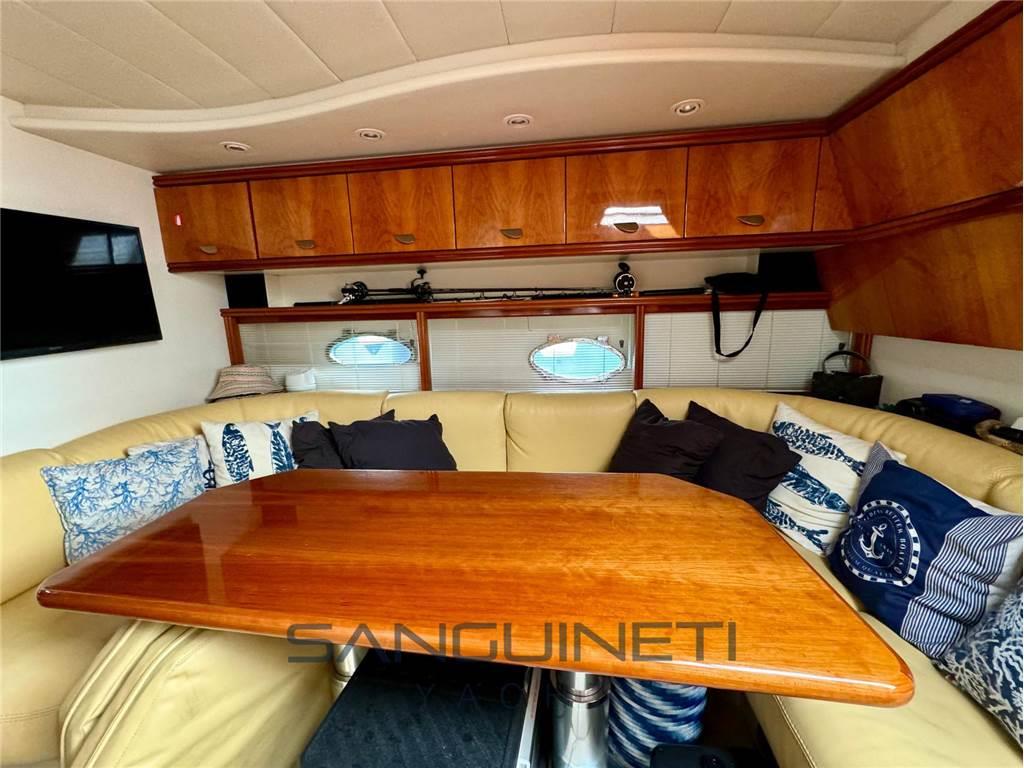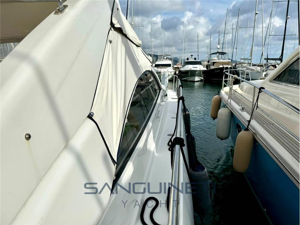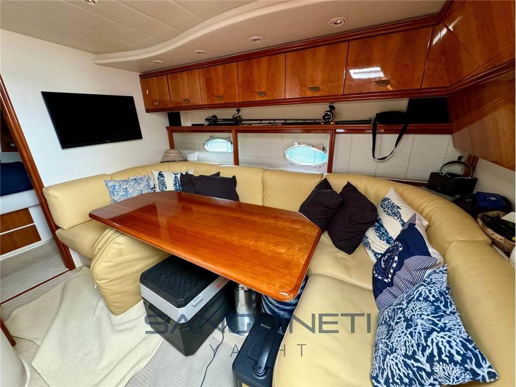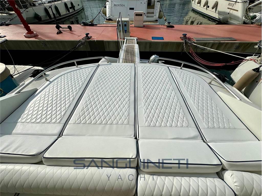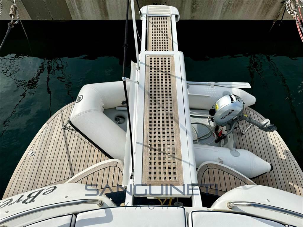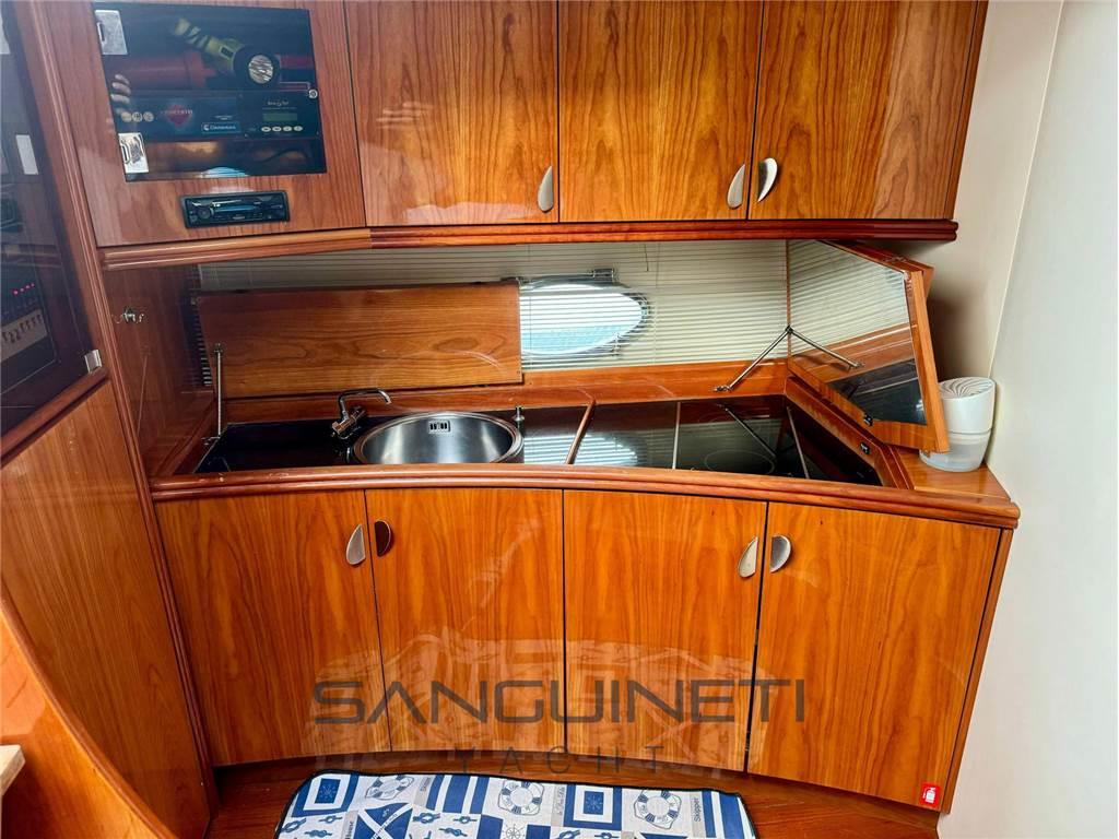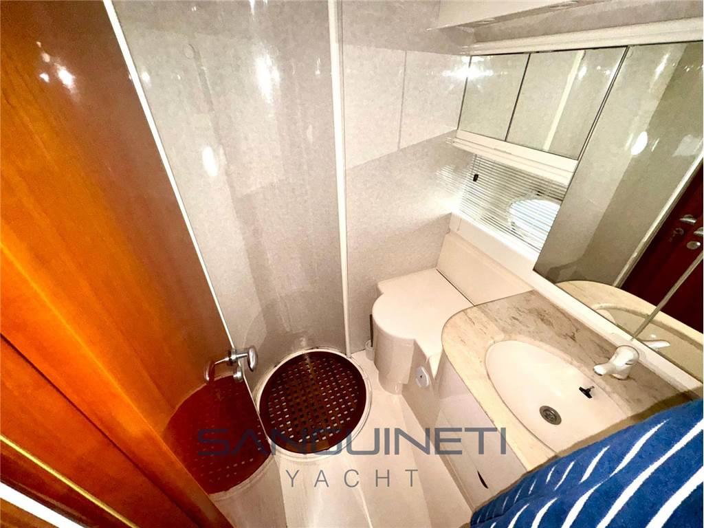 Notas internasAll'interno, la disposizione degli spazi riflette un'attenta progettazione volta a massimizzare la vivibilità. A prua troviamo una spaziosa cabina armatoriale con letto matrimoniale, caratterizzata da finiture eleganti e materiali di alta qualità. Questa cabina offre un ambiente accogliente e ben illuminato, con accesso diretto a un bagno privato dotato di box doccia separato, offrendo tutto il comfort necessario per soggiorni prolungati. Al centro della barca, una dinette confortevole con divani invita al relax e alla convivialità, mentre la cucina completamente attrezzata, con forno, frigorifero e piano cottura, consente di preparare comodamente pasti a bordo. Nella zona poppiera, separata dal resto dell'imbarcazione, si trova una cabina per il marinaio, accessibile dal pozzetto esterno, con due letti singoli in piano e un ulteriore bagno con box doccia, offrendo così indipendenza e privacy.