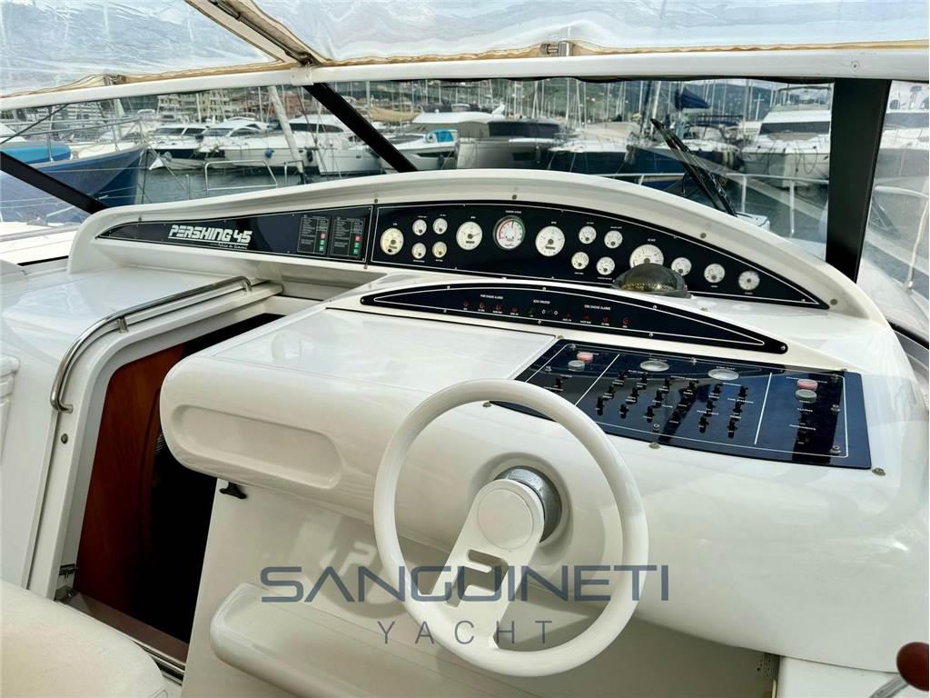 Notas de la instrumentaciónQuesto Pershing 45 è equipaggiato con strumentazioni tra cui GPS-plotter, VHF, ecoscandaglio e autopilota, verricello elettrico ed l'elica di prua per manovre precise e sicure