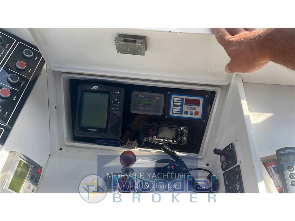 Notas internasCabine: 3 Toilette: 3 Antenna TV satellitare Impianto stereo Impianto TV Tv Bagni: 3 Cabine: 3 Cucina Congelatore Notas de la instrumentaciónImpianto elettronico- Ecoscandaglio - Radar - Log-contamiglia - Impianto TV: ANTENNA TV SAT - Centrale di navigazione - Plotter - Pilota automatico - Radio - Bussola - Lettore CD - GPS - Altoparlanti di pozzetto - VHF Pilota automatico Bussola Comandi flaps Contamiglia Ecoscandaglio GPS GPS-Plotter Log Vhf Notas de armamentoCoperture/Tendalini- Tendalino pozzetto Equipaggiamenti Elettrici - Presa corrente a terra - Generatore: MASE 6 KW - Inverter Equipaggiamenti interni - Elica di prua: NUOVA - Lavatrice - Pompa di sentina elettrica - Forno - Pompa di sentina manuale - WC marino - Aria condizionata - WC elettrico - Riscaldamento - Acqua calda - Frigorifero - Congelatore - Caricabatterie Dotazioni Esterne - Doccia pozzetto - Passerella idraulica - Autogonfiabile - Cuscineria pozzetto - Tavolo pozzetto - Scaletta bagno Cuscineria Frigorifero esterno Scaletta: 1 Tavolo nel pozzetto |