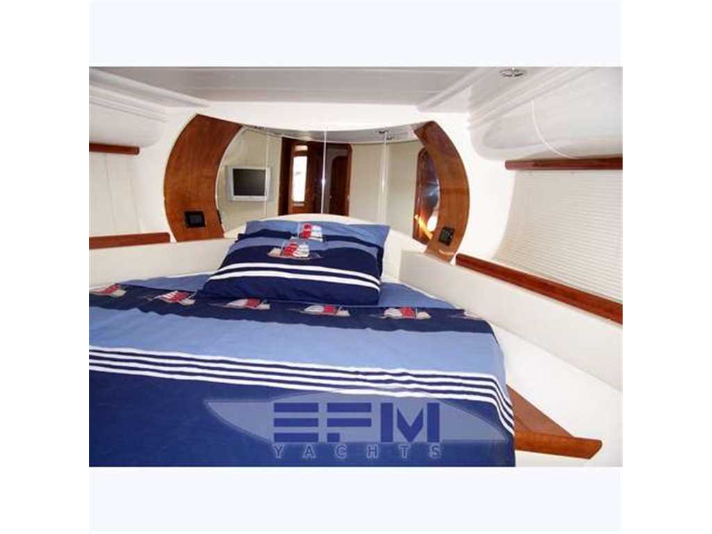 Notas internasInterni molto belli e curati - grande cabina armatoriale a prua con letto matrimoniale ad isola e bagno privato con box doccia - cabina matrimoniale a poppa con bagno privato e doccia con ingresso indipendente - cabina ospiti con letti in piano e bagno ospiti - dinette con tavolo abbattibile e trasformabile con divano a "c" contrapposto alla cucina e pavimento in teak - cucina con piano in vetroceramica con lavello e frigo -