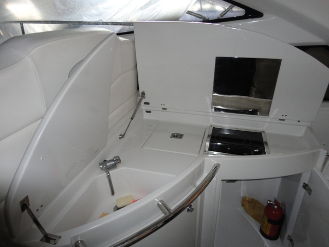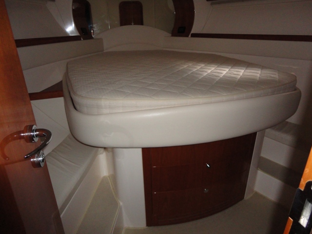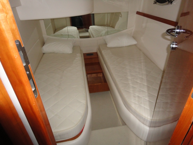 Notas internas3 cabinas - 3 baños, camarote de proa con cama doble y baño isla - cabina de ducha en medio del barco con dos camas individuales - aseo de invitados - cabina doble en popa con cama doble y baño privado - cocina con encimera de cocina - nevera - Interior madera de la cereza - sofás de cuero oscuro