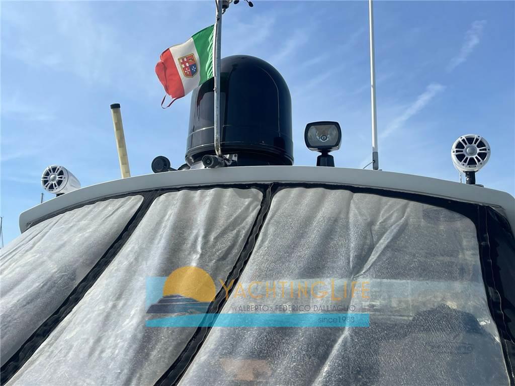 Notas de armamentoAltoparlanti, Antenna Satellitare TV, Aria condizionata (Anche in pozzetto), Boiler, Cappottina, Cucina, Cuscineria completa, Decoder satellite, Frigorifero esterno, Frigorifero interno, Impianto acque nere, Impianto TV, Pavimento interno in legno, Piastra in vetroceramica, Prese interne 12v, Prese interne 220v, Stereo, TV, WC marino elettrico