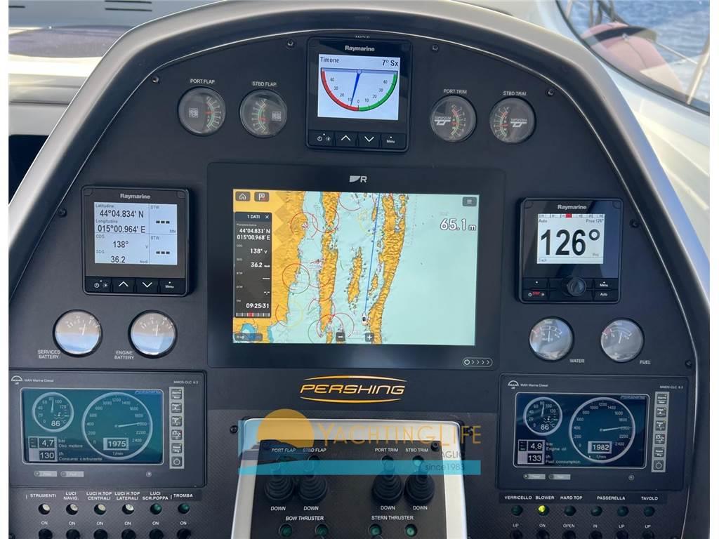 Notas de la instrumentaciónAllarme motore, Ancora, Angolo barra (Raymarine nuovo), Autoclave, Autogonfiabile, Batterie, Bussola, Caricabatterie, Colorazione speciale (Grigio), Comando motori elettronico, Doccia esterna, DSC vhf, Ecoscandaglio, Elica di poppa - stern thruster (Con radiocomando), Elica di prua - bow thruster (Con radiocomando), Flap idraulici, Hard top, Impianto antincendio, Indicatori Flaps, Lavandino nel Pozzetto, Luci di cortesia, Luci subacquee, Passerella (Idraulica), Piattaforma (In teak), Pilota automatico (Raymarine nuovo), Plotter con antenna GPS (Raymarine nuovo), Pompa di sentina automatica, Pompa di sentina elettrica, Porta ingresso, Pozzetto Teak, Presa 220V banchina, Salpa Ancore Elettrico, Scaletta da bagno, Tavolo pozzetto, Tromba, Winch tonneggio di poppa, Yacht controller